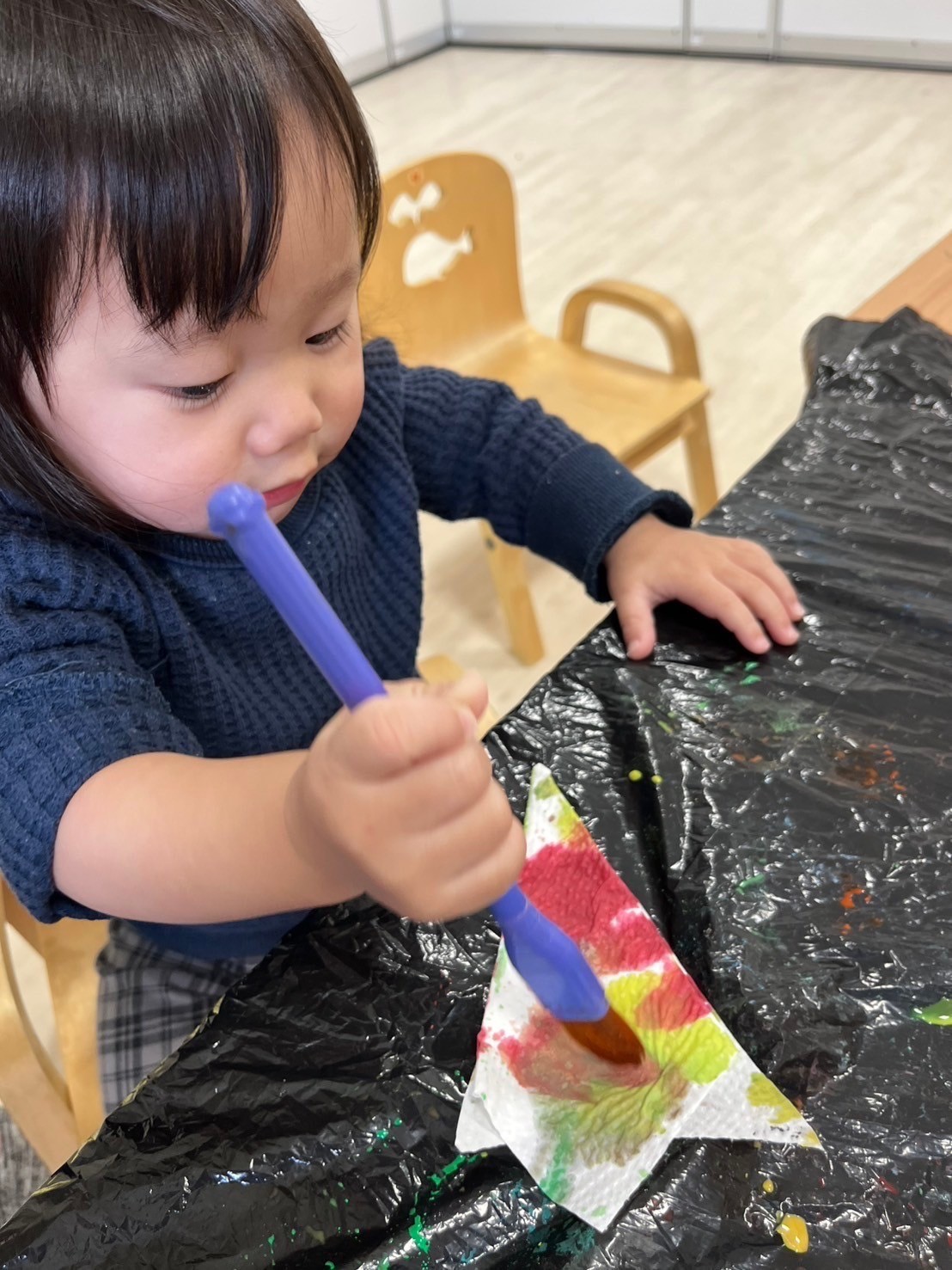 いろんな色の絵の具と筆を使って、みんな上手に楽しく製作できました❣️