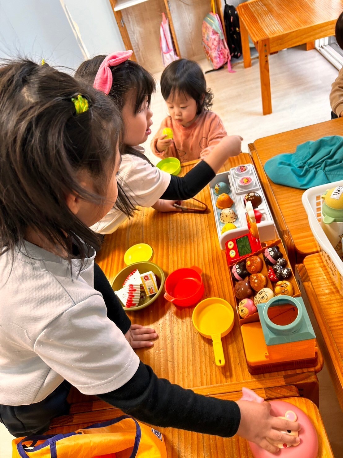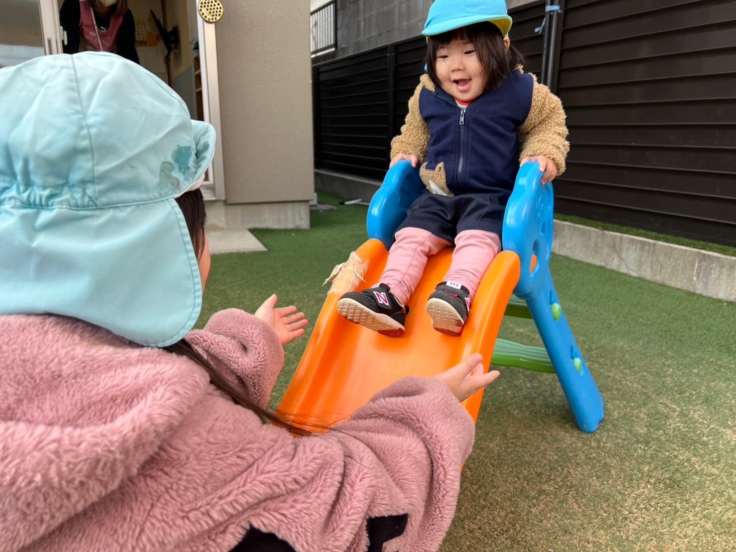 園庭では、ー靴を履かせてくれたり、滑り台の補助をしてくれたり、お部屋では、小さい子の好きなおもちゃでいいよ!という声も聞かれ触れ合いながらままごとを楽しんでいました✨