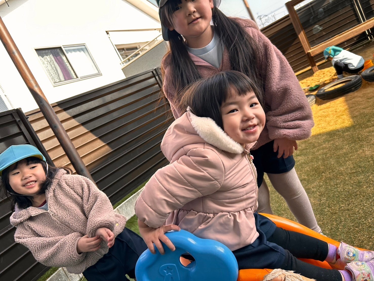 みんなで手遊びや歌を楽しみながら、笑顔いっぱいで公園まで移動ができましたよ😊 公園では繰り返し遊具で遊んだり、異年齢児同士ルールのある遊びに誘い合いながら楽しんでいて、歌を口ずさみながらのバスごっこも大盛り上がり💖