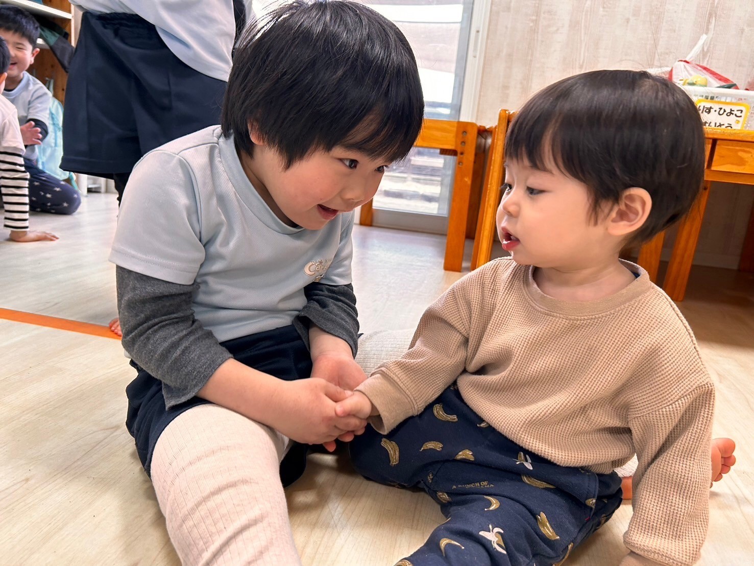 今日は、園庭に出て以上児さんとの遊びを楽しんでいました〜!