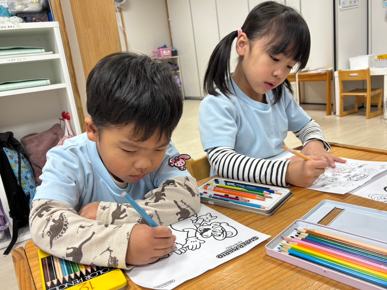 その後は、自由遊び💓お休みしていた子は製作を、園庭では氷鬼や砂遊びを、室内ではぬりえやシルバニアファミリー、カルタをして楽しみました😆それぞれにしたい遊びを選択できることでより集中したり、気持ちの切り替えも上手にできていました✨