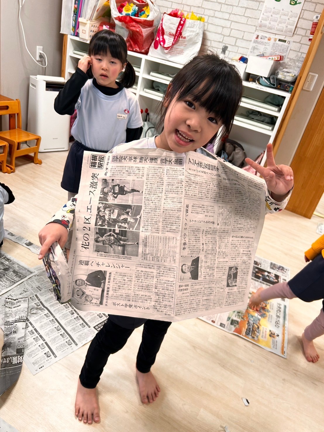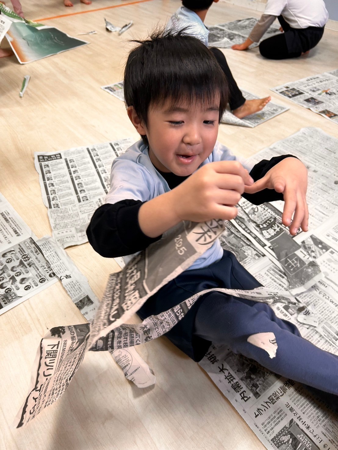 最後は新聞紙をビリビリとやぶって豪快に遊び、笑い声、笑顔いっぱいのりすぐみ、ひよこぐみさんでした😆😆❣️【ぱんだぐみ】