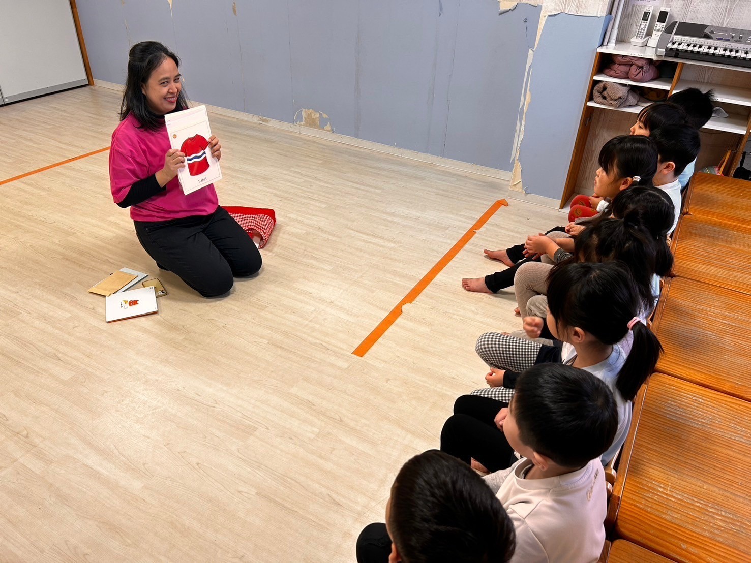身につけるもの(ズボンや靴、Tシャツなど)を英語で言ったり、英語の絵本ではチャリナ先生とのお買い物ごっこのやりとりがあり、みんなは「thank you」とお返事をしましたよ😆