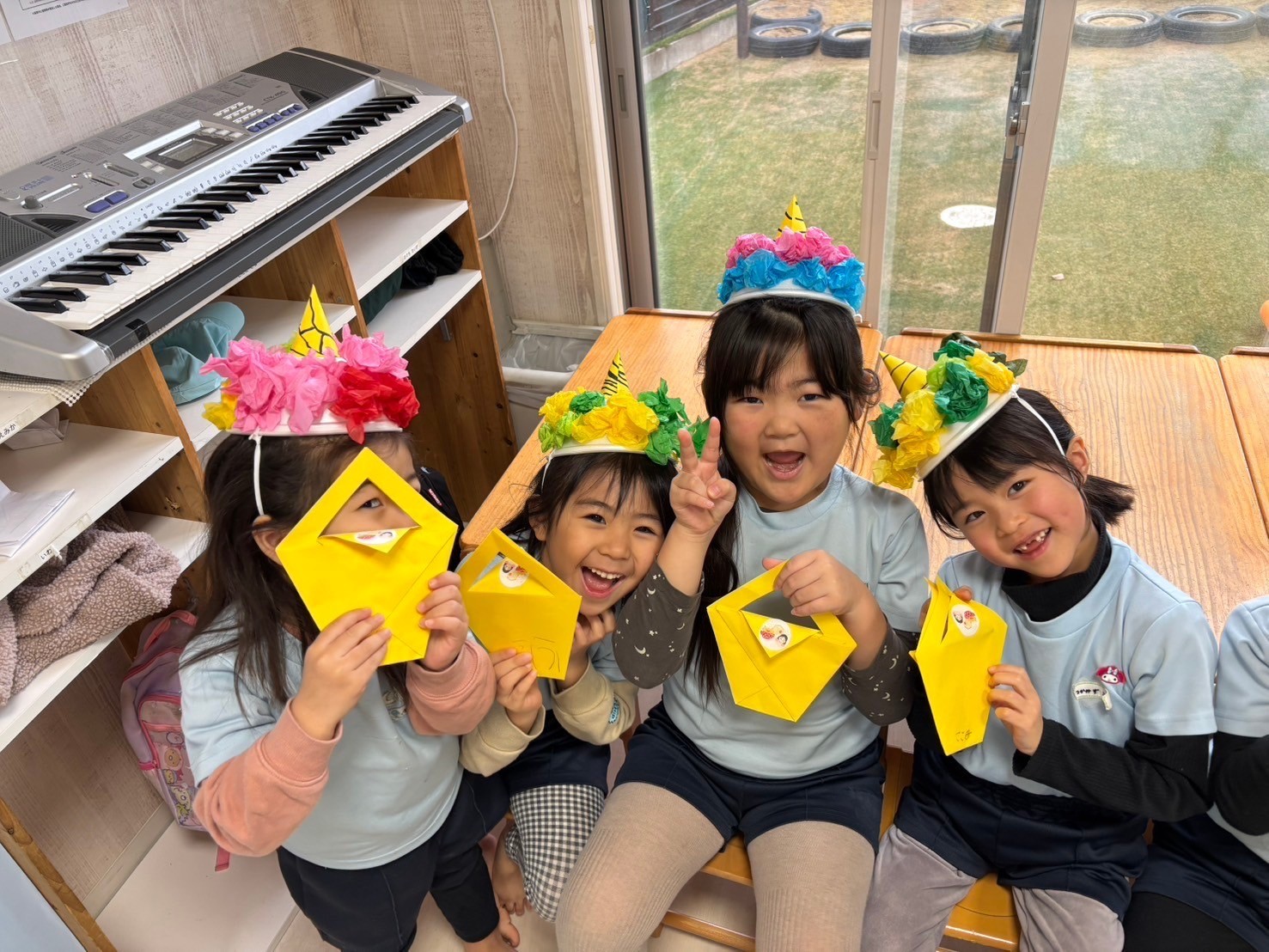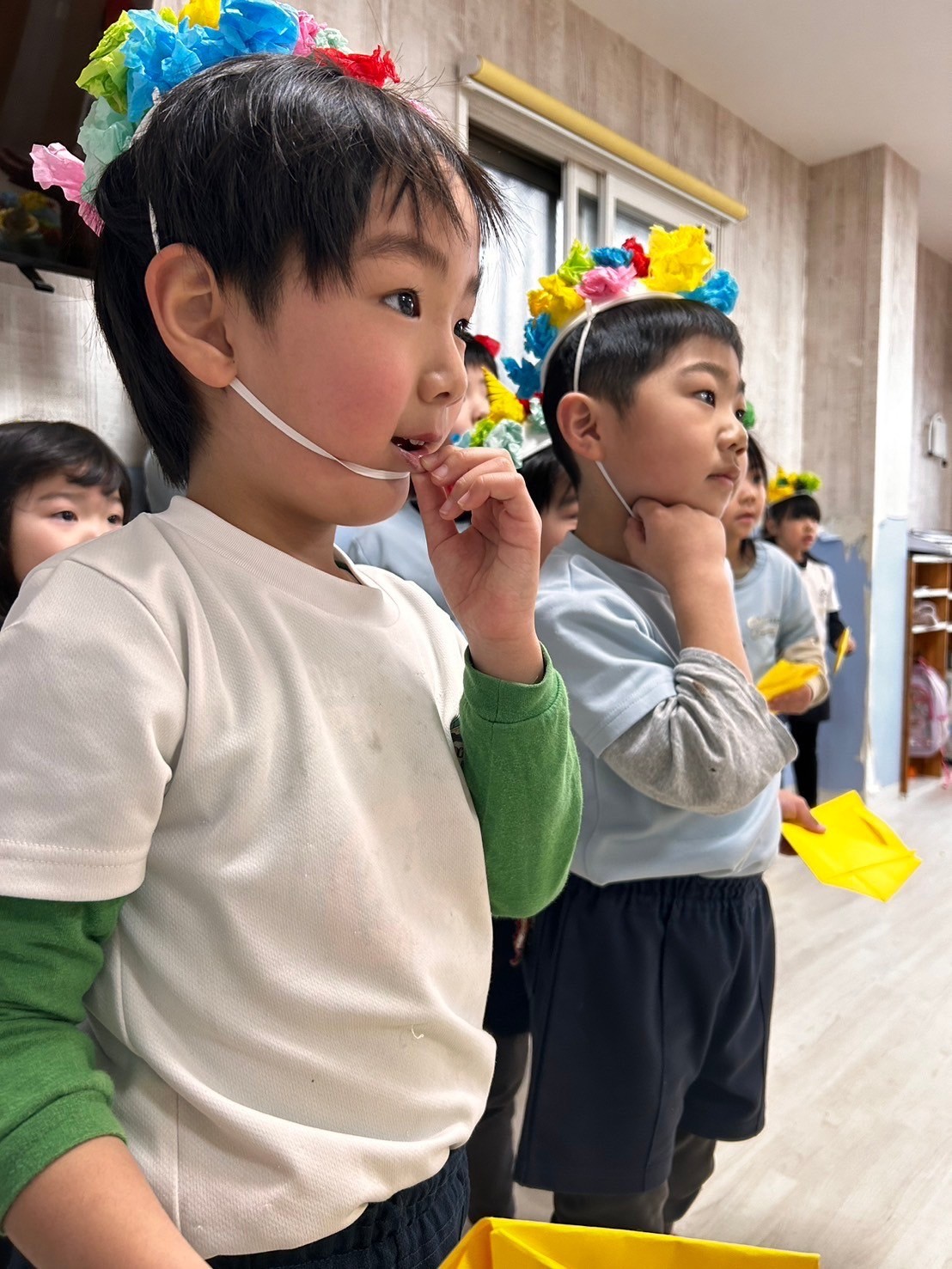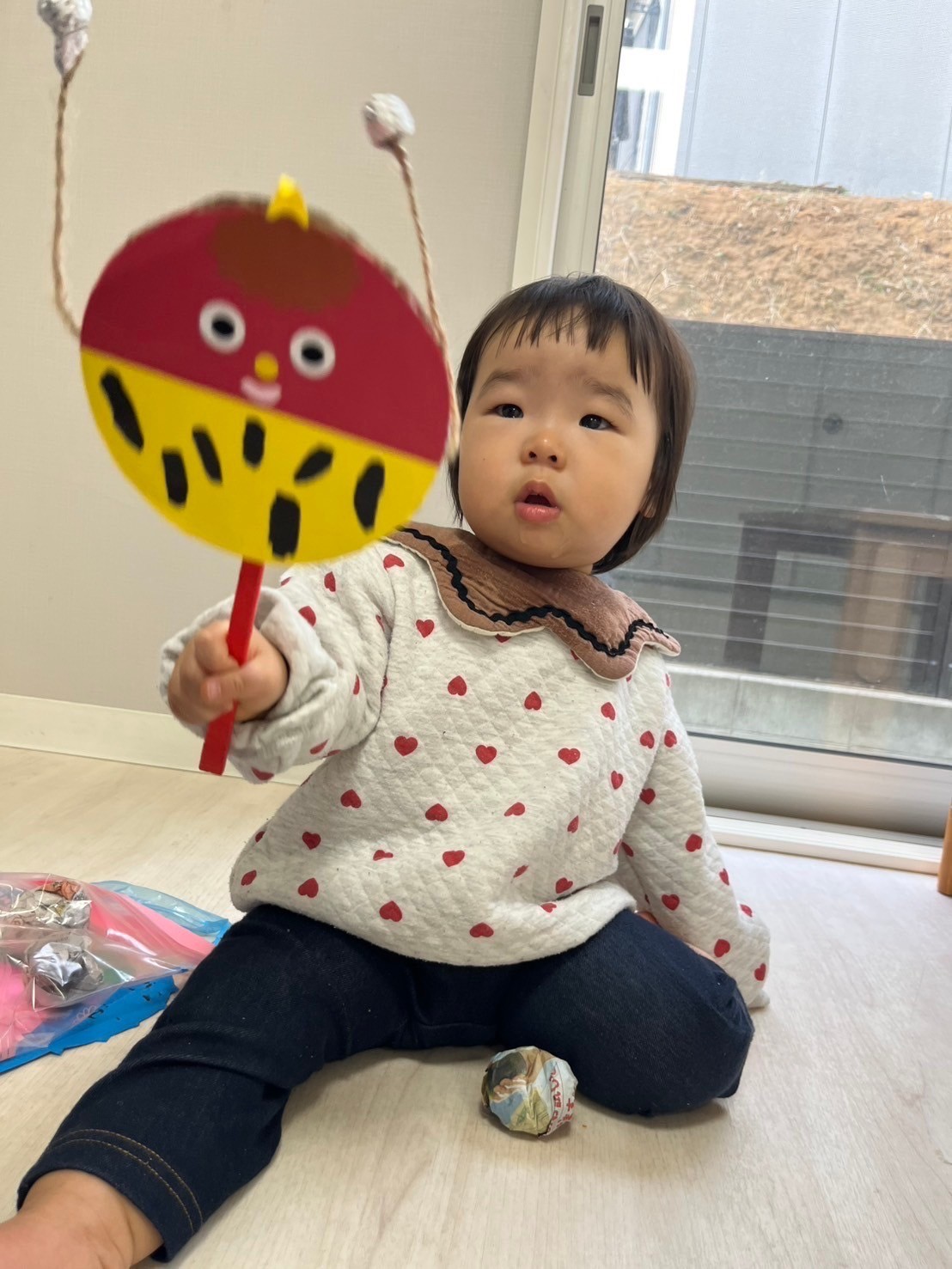 お部屋にも少し鬼さんが覗きに来てくれましたが、じーっと見るだけでピンとこない、ひよこさんも数名いました😆