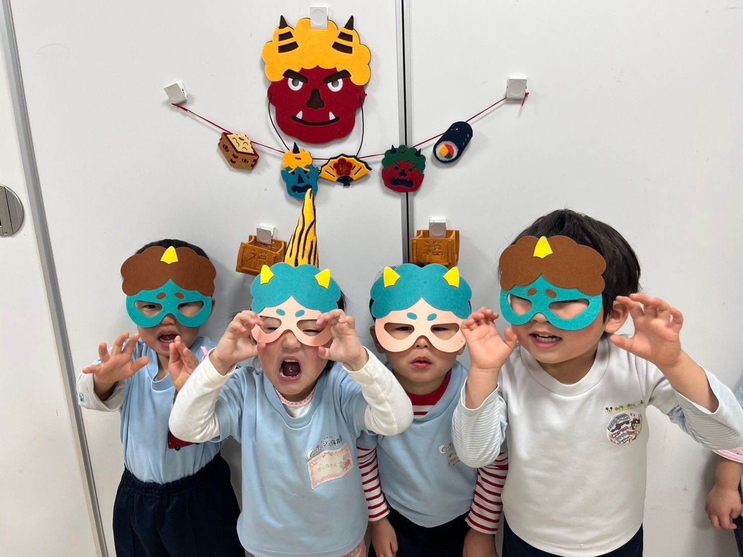 今日は絵本の読み聞かせの後、豆まきがありました👹