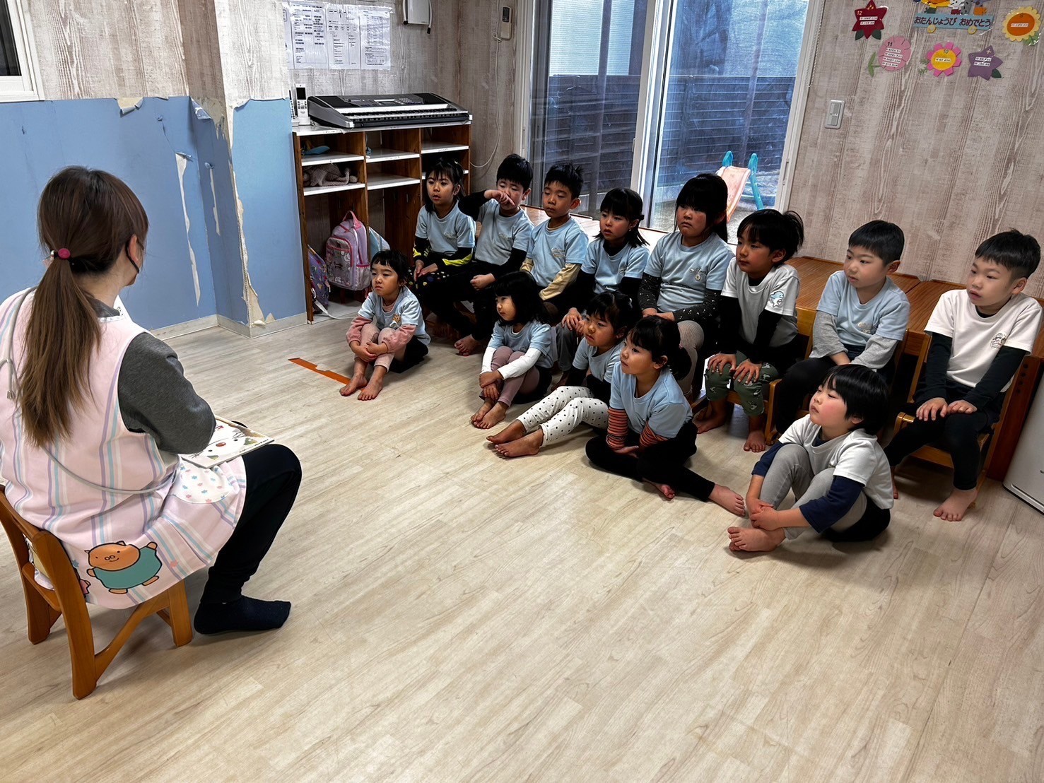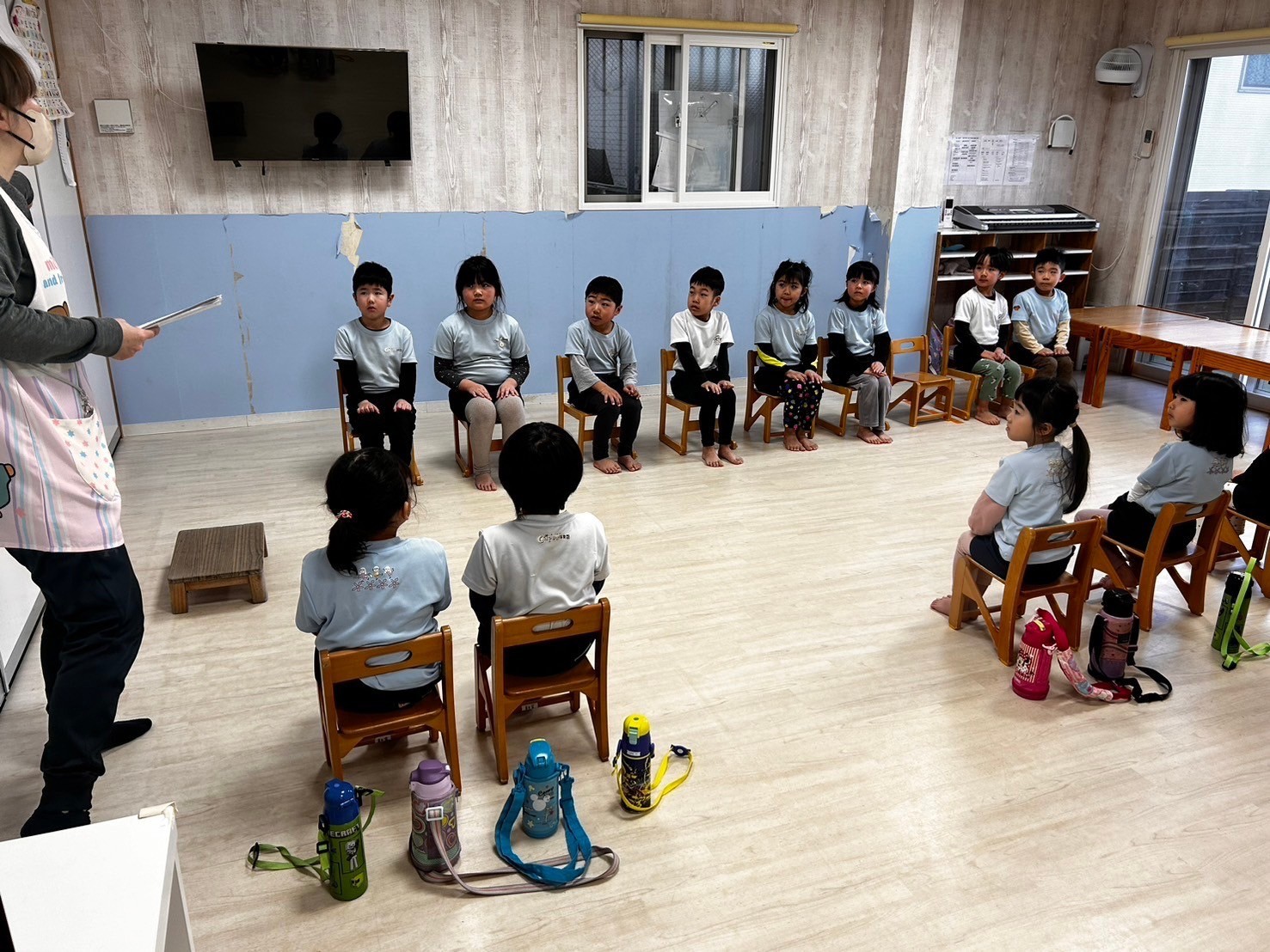 紙芝居を見ながらひなまつりの話をすると、興味を示して聞くことができていましたよ🎎✨折り紙を初めてすることを伝えると、やりたいと意欲的な発言も聞かれ、目がキラっと輝く子どもたち🤩