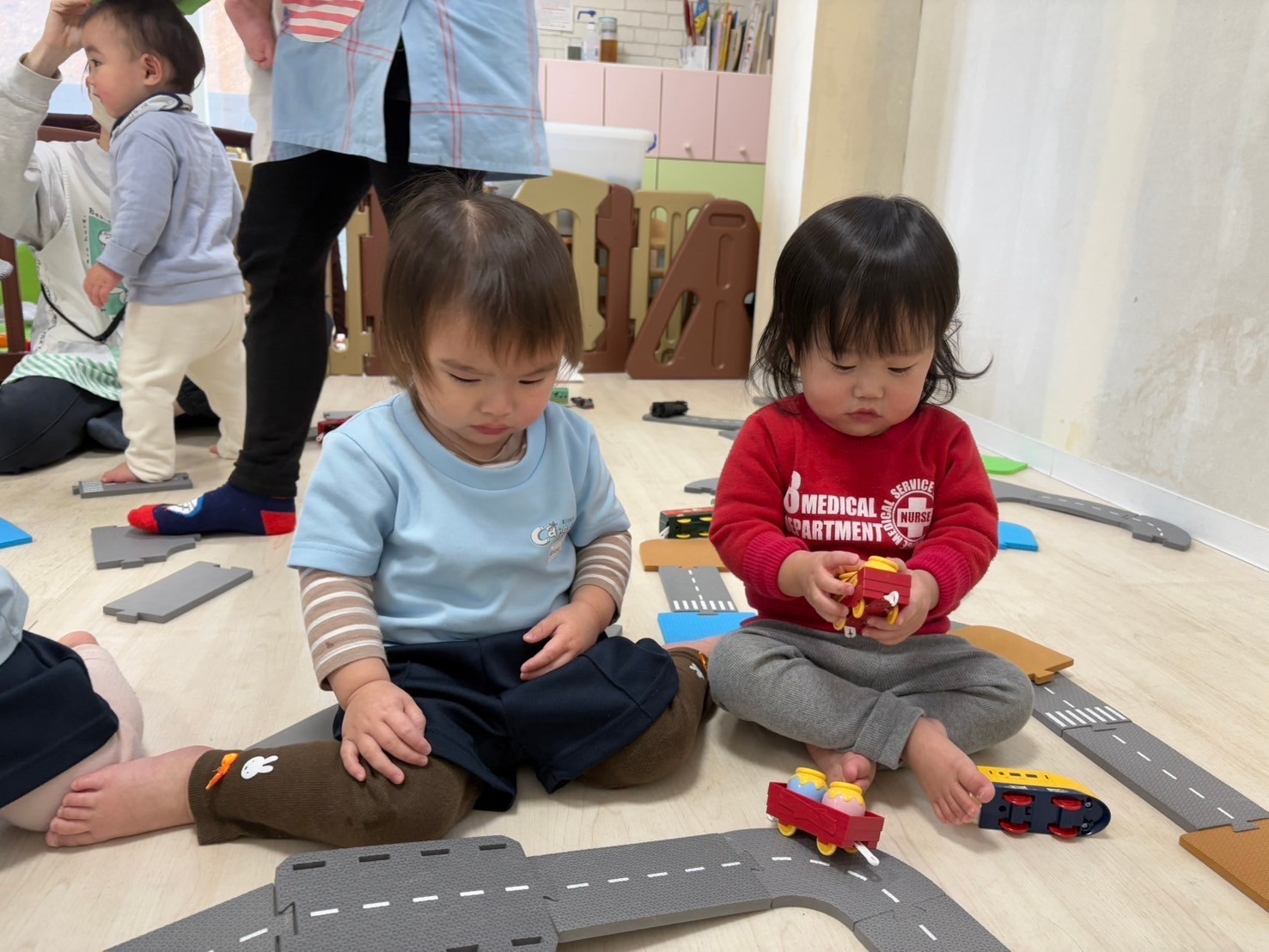 プラレール🚞では、レールを繋げたり、友だちと電車を集め運んだりして遊びましたよ🤗【ぱんだぐみ】