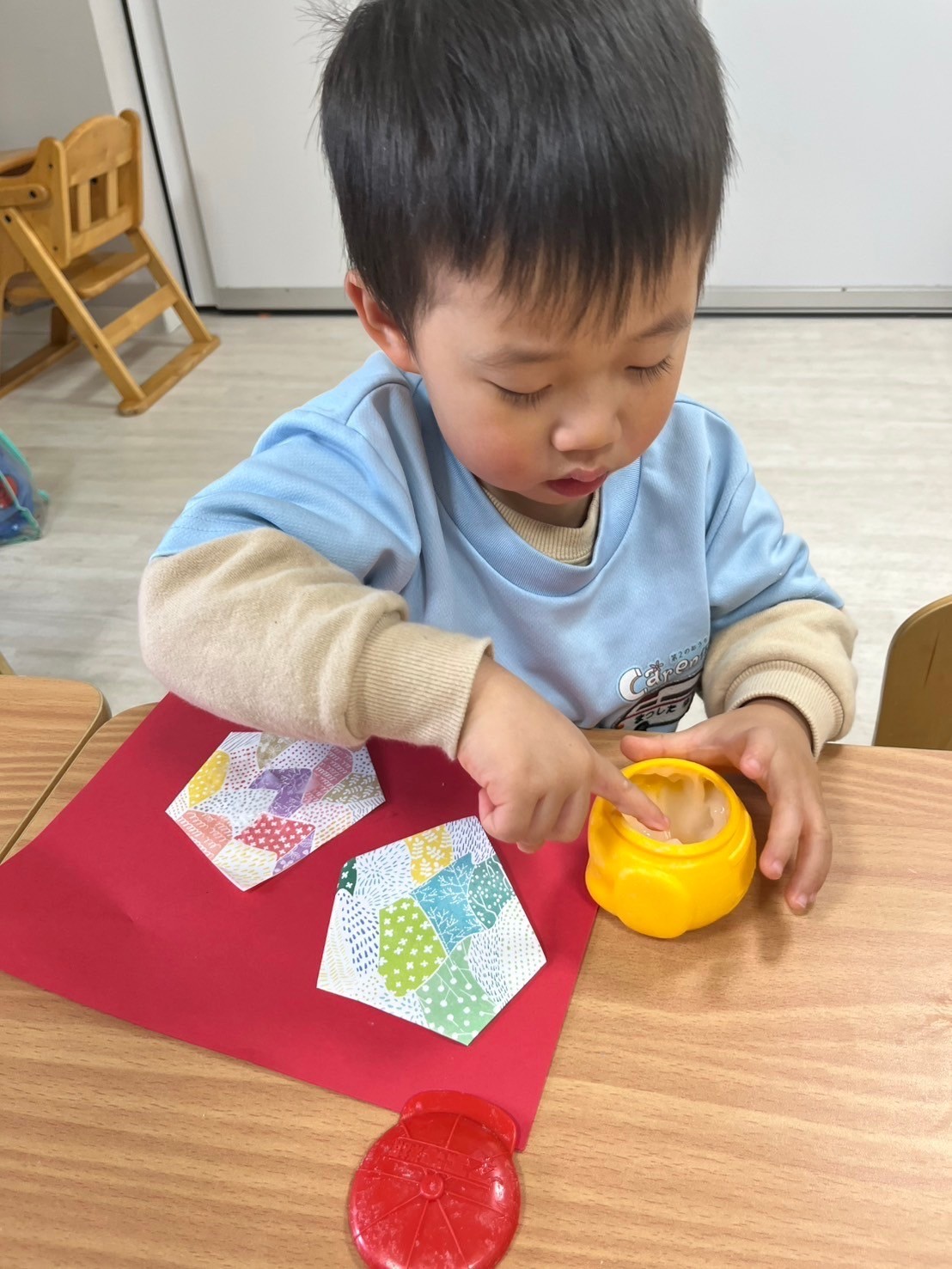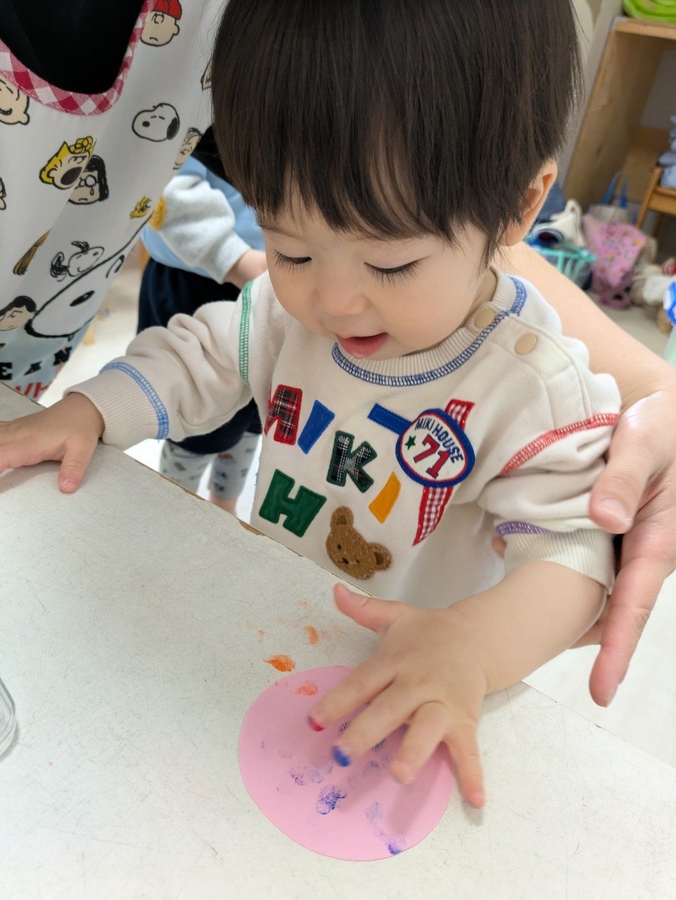 いろんな色を使い、指スタンプを楽しんでいました😊