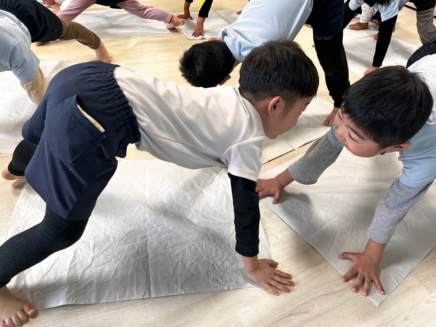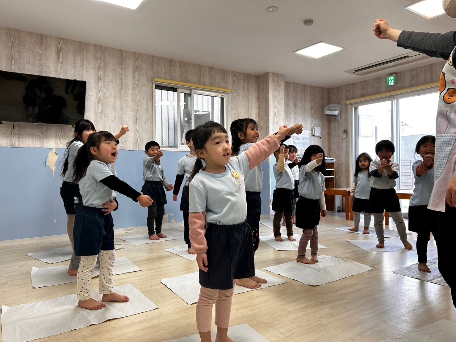今日は卒園式の練習をしました😌✨初めての練習だったので、一つ一つ動きを確認しながら進めました☺️緊張感もありつつ、感極まって涙する子もいながら練習でしたよ🥹頑張ったあとには、新聞紙遊び❣️体も動かして笑顔が戻っていました😆🩷寒さが続いてるせいか体調を崩す子も増えているので気をつけていきたいと思います🍀
