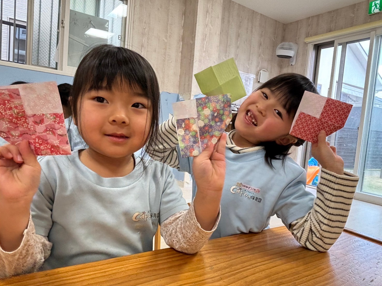 出来上がりを喜んでいて、満足感を味わっている様子の子どもたちでした😍