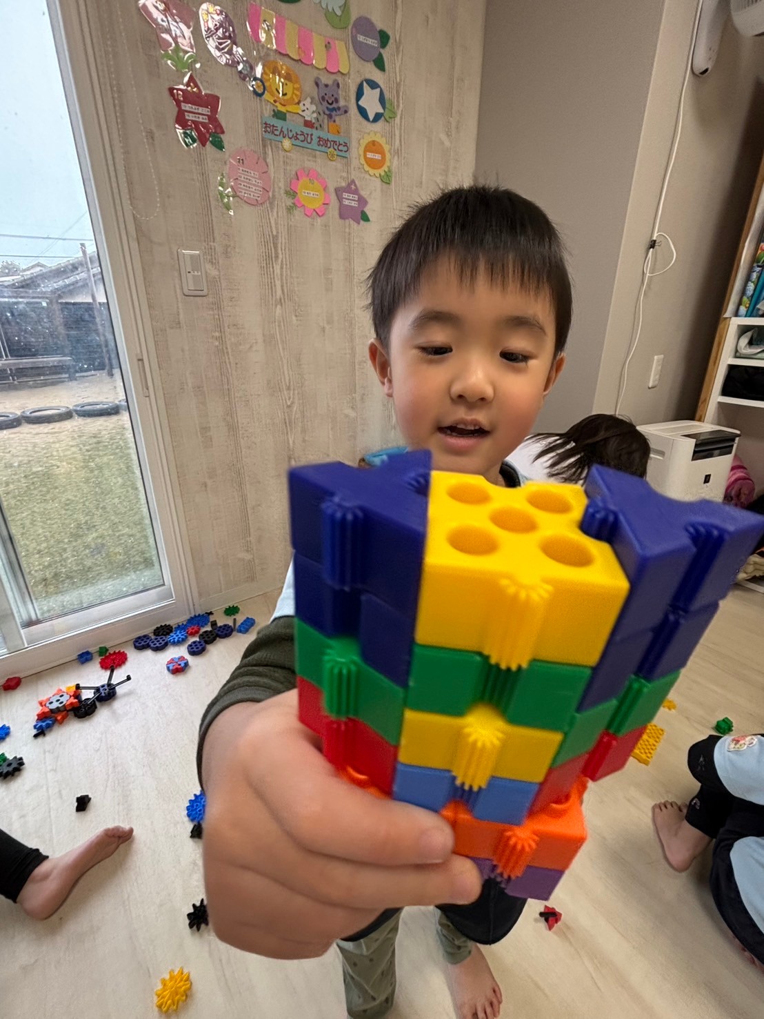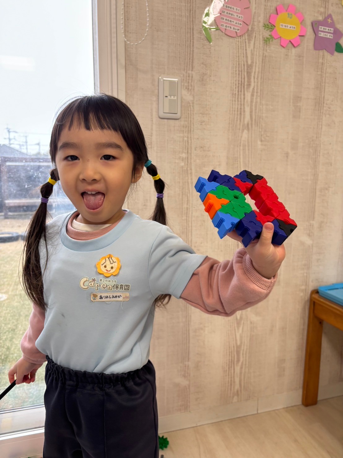 長い時間でしたがよく集中して最後まで取り組むことができていました🌟製作の後はブロックで遊びました🤗