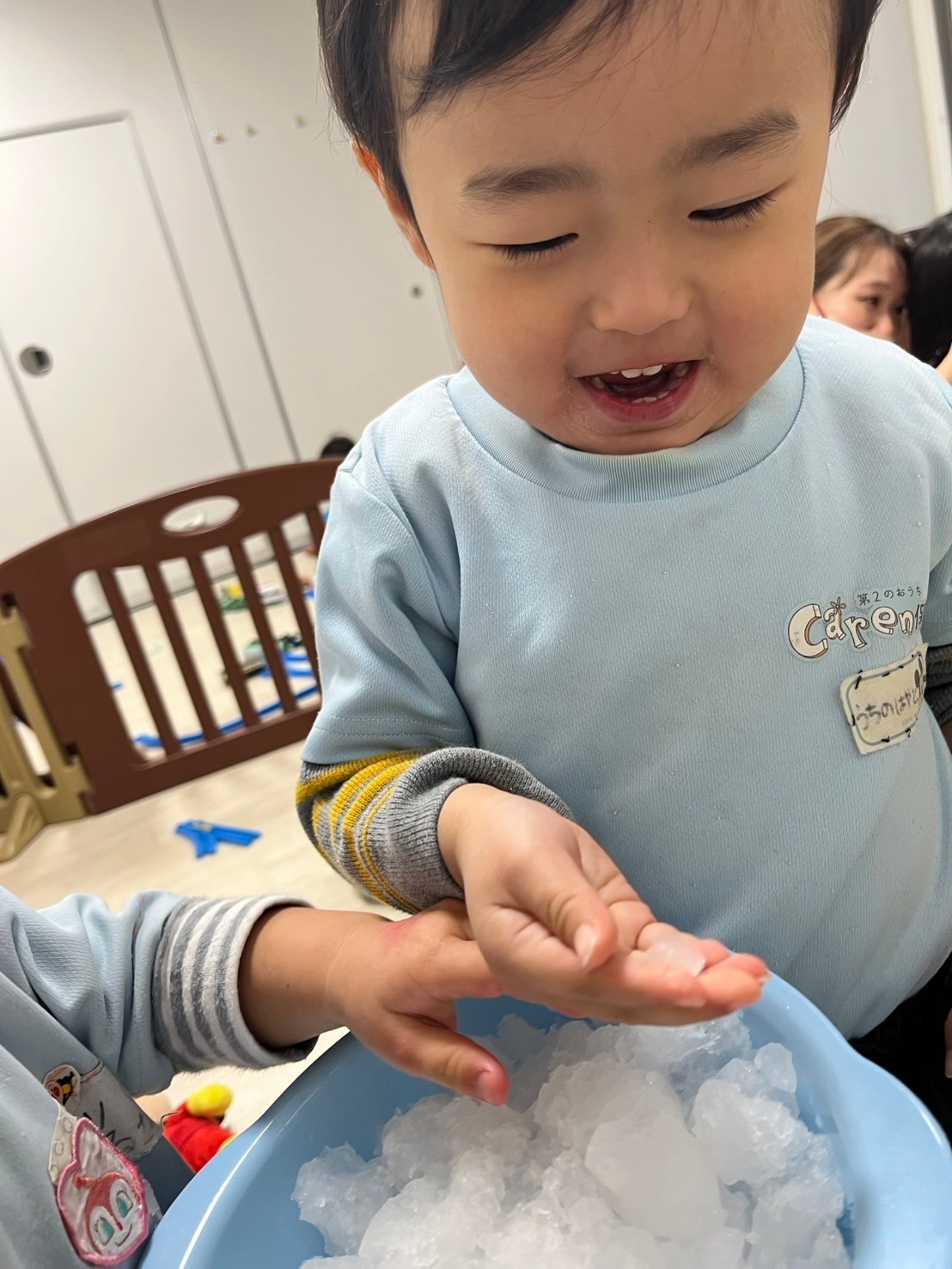 雪に触れる機会を作ると、積極的に触りたがる子と警戒している子といましたよ😆先生が側で手を添えたり声かけしたりして関わることで、安心感を持って全員触れることができていました✨つめた〜い❄️きれい💖と口々に感想も話していたかわいい子どもたちでしたよ😍