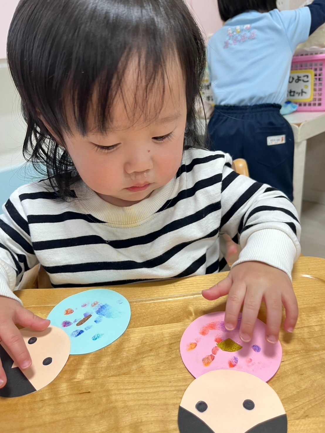 ひよこ組さんは手先を使って月製作のシール貼りもしました🎎個性豊かな表情の雛人形が出来ましたよ😆🌟