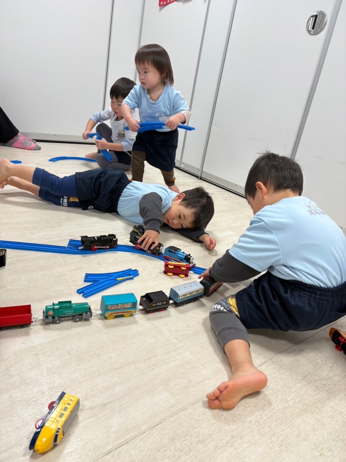 仲良く誘い合って遊びに夢中になっている子、おもちゃの取り合いになっている子とさまざまでしたが、大好きなプラレールでたくさん遊べて満足そうなみんなでしたよ😊💖