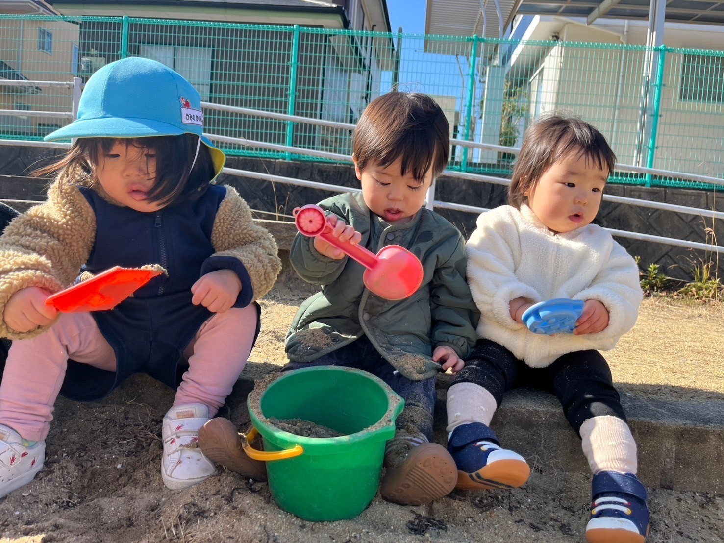 公園では新入園児のお友達もも意欲的に砂に手を伸ばし、友だちとのコミュニケーションまで楽しみながら遊ぶことができていました😍滑り台、ブランコも順番を守って遊ぶことができ、色つき鬼など保育者や友だちとのコミュニケーションを楽しみながら遊べていましたよ😊✨