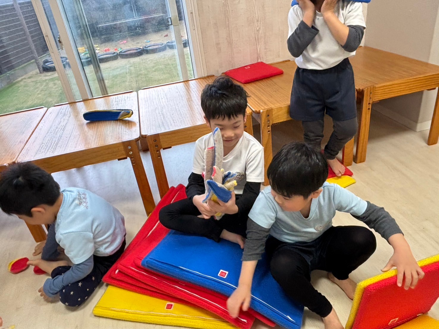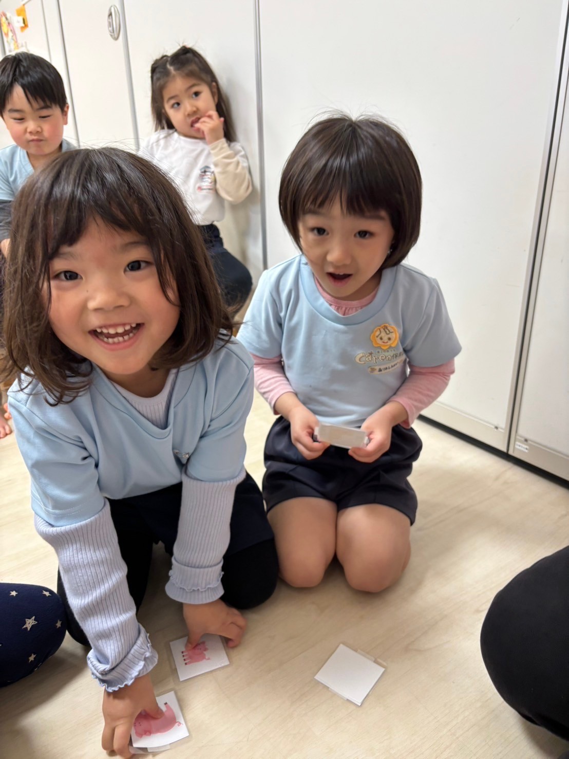 英語レッスンに参加して、カードを見たり、発音を聞いたり、英語の絵本の読み聞かせもしっかり座って聞くこともできていましたよ✨