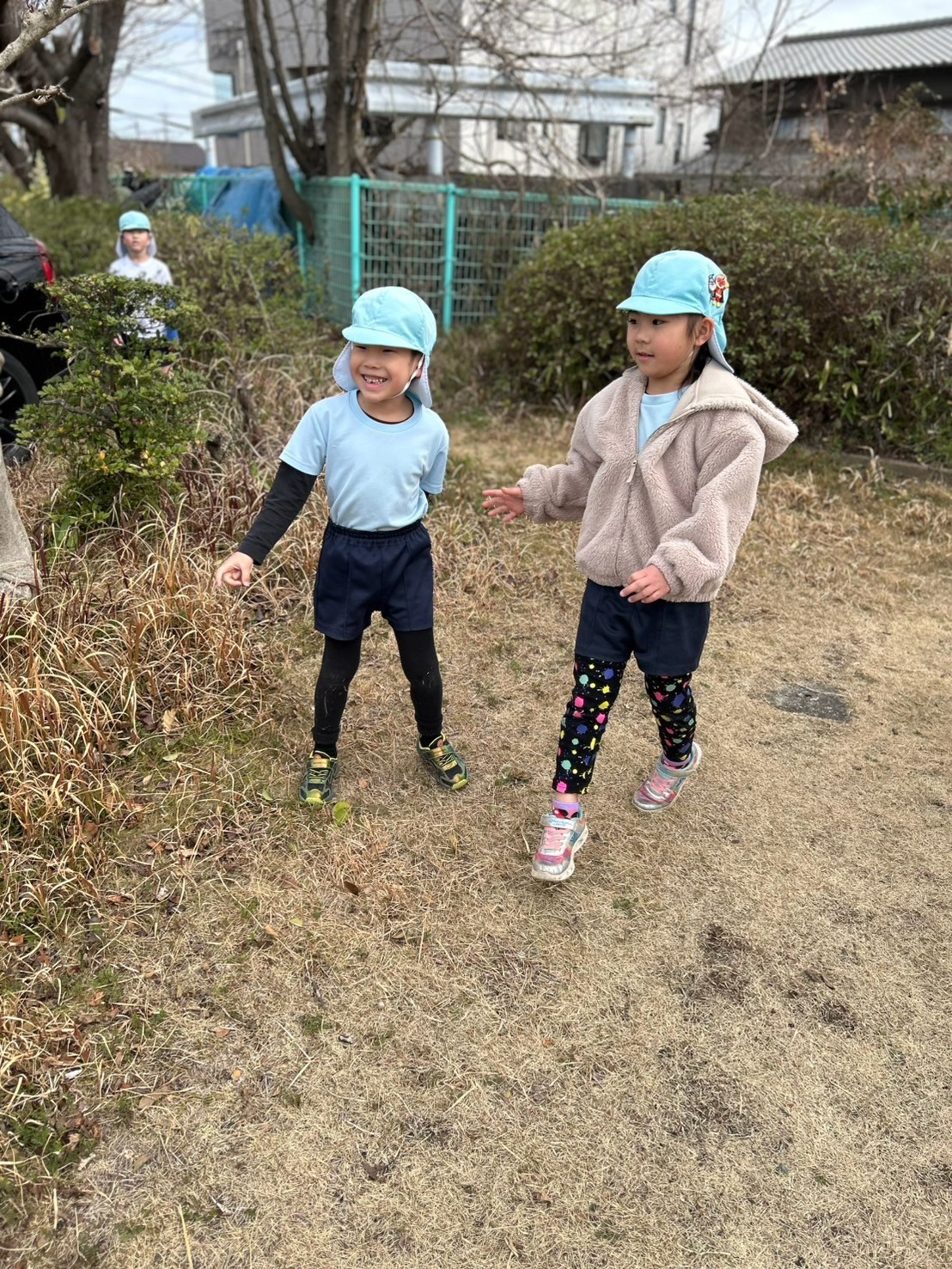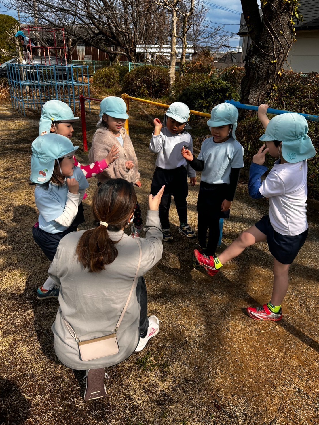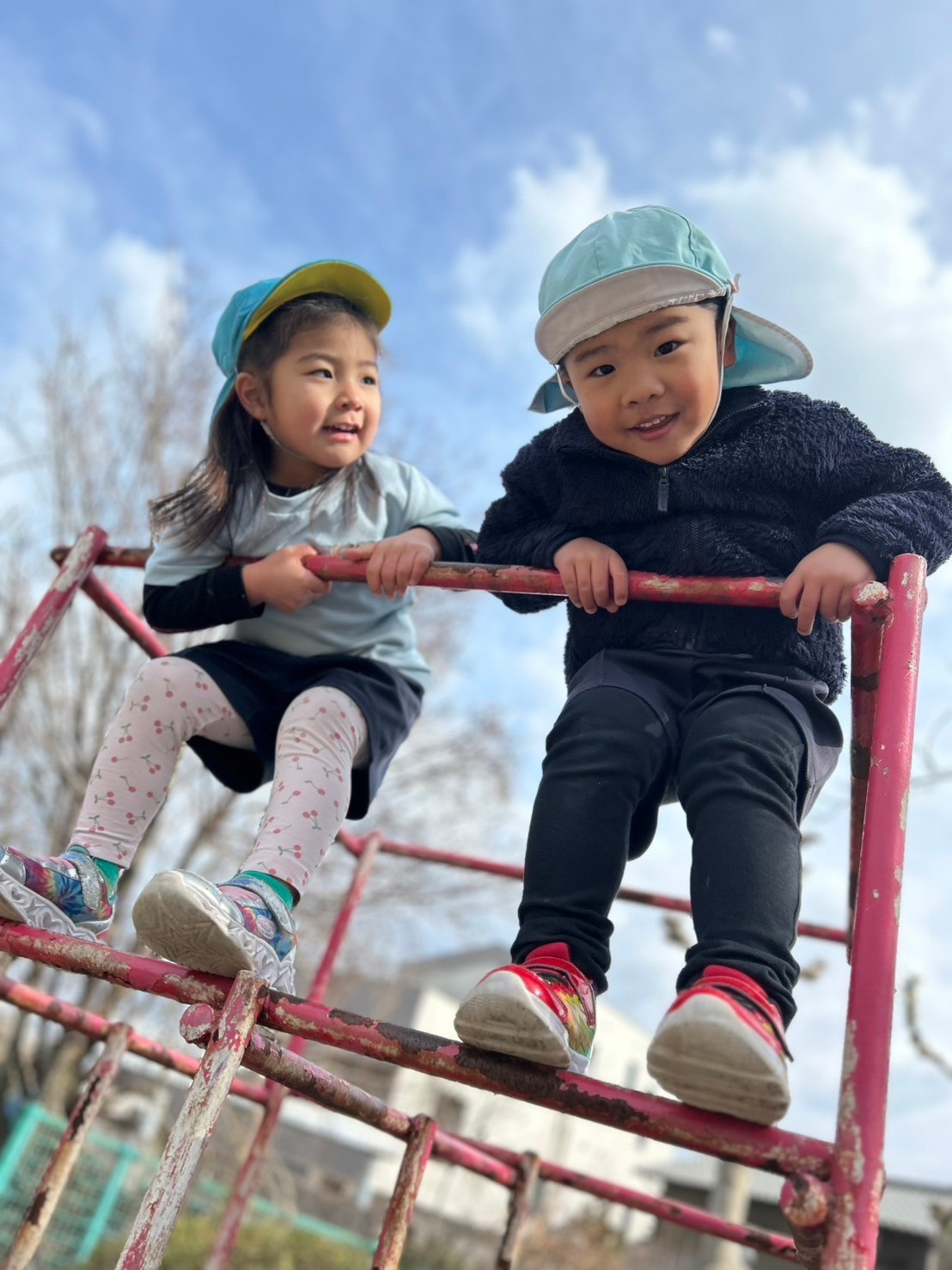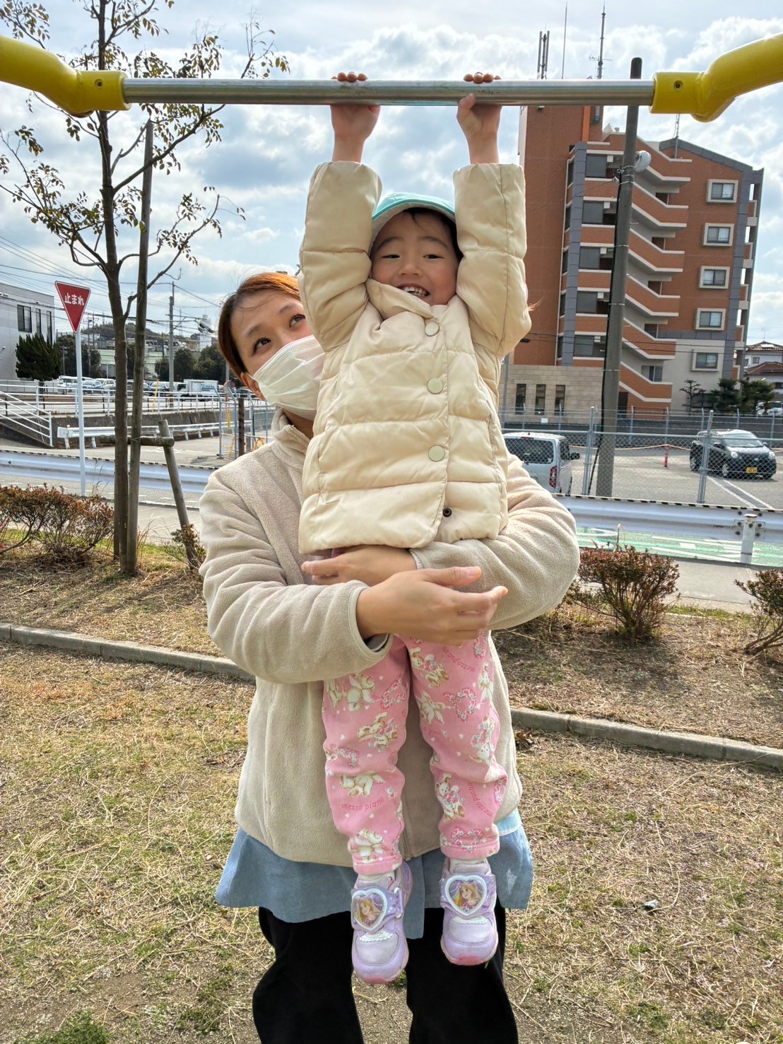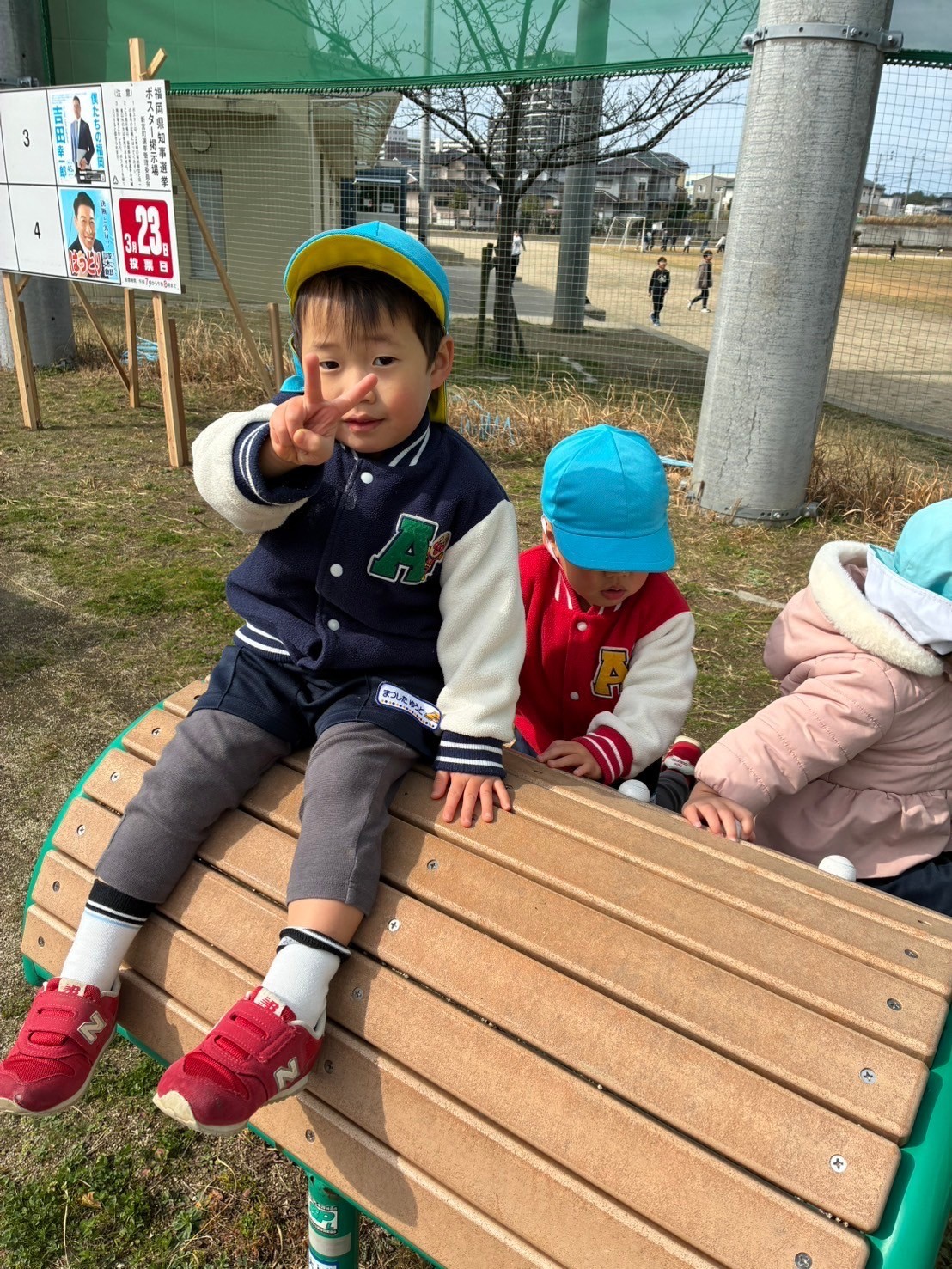 今日は絵本の読み聞かせの後、裏田公園に行きました❗️残念ながら滑り台はペンキの塗り替え中で遊べなかったのですが、ブランコや砂場、シャングルジムで遊びました🤗中でも一番盛り上がったのは氷おにで、仲間と助け合いながら全力で楽しんでいました😆発熱の子が増えてきているので、週末体調の変化に気をつけながらお過ごしすださい✨週明けも元気なみんなに会える事を楽しみにしています🥰