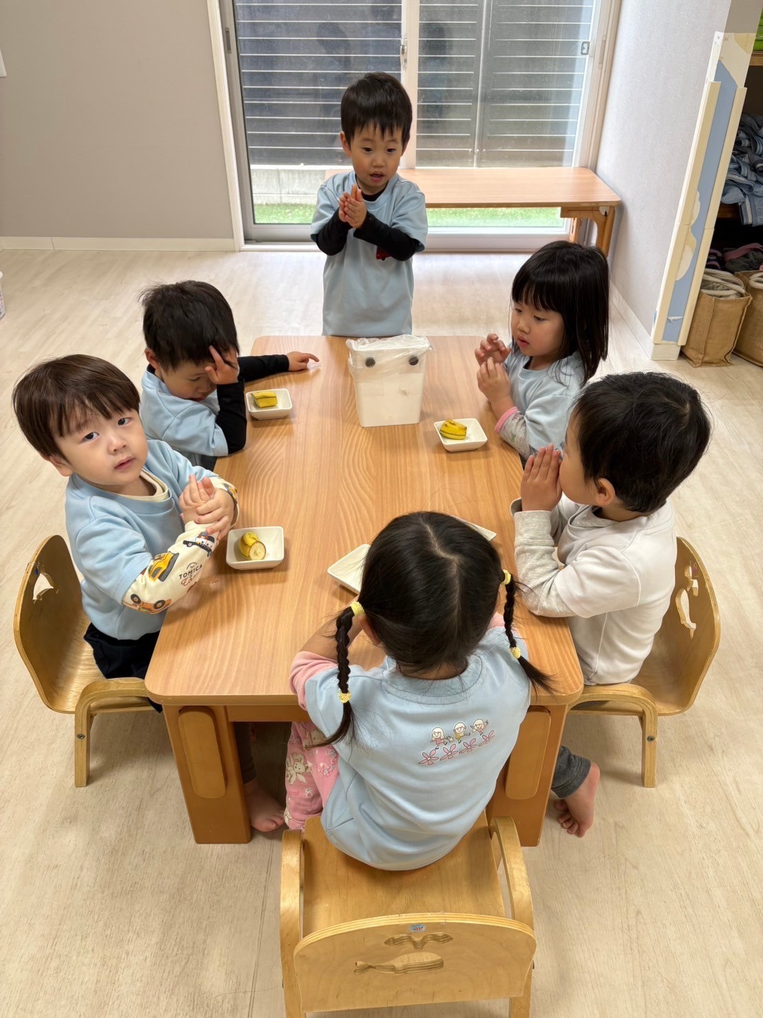 帰りも頑張って歩いたのでお腹がぺこぺこの子どもたち。