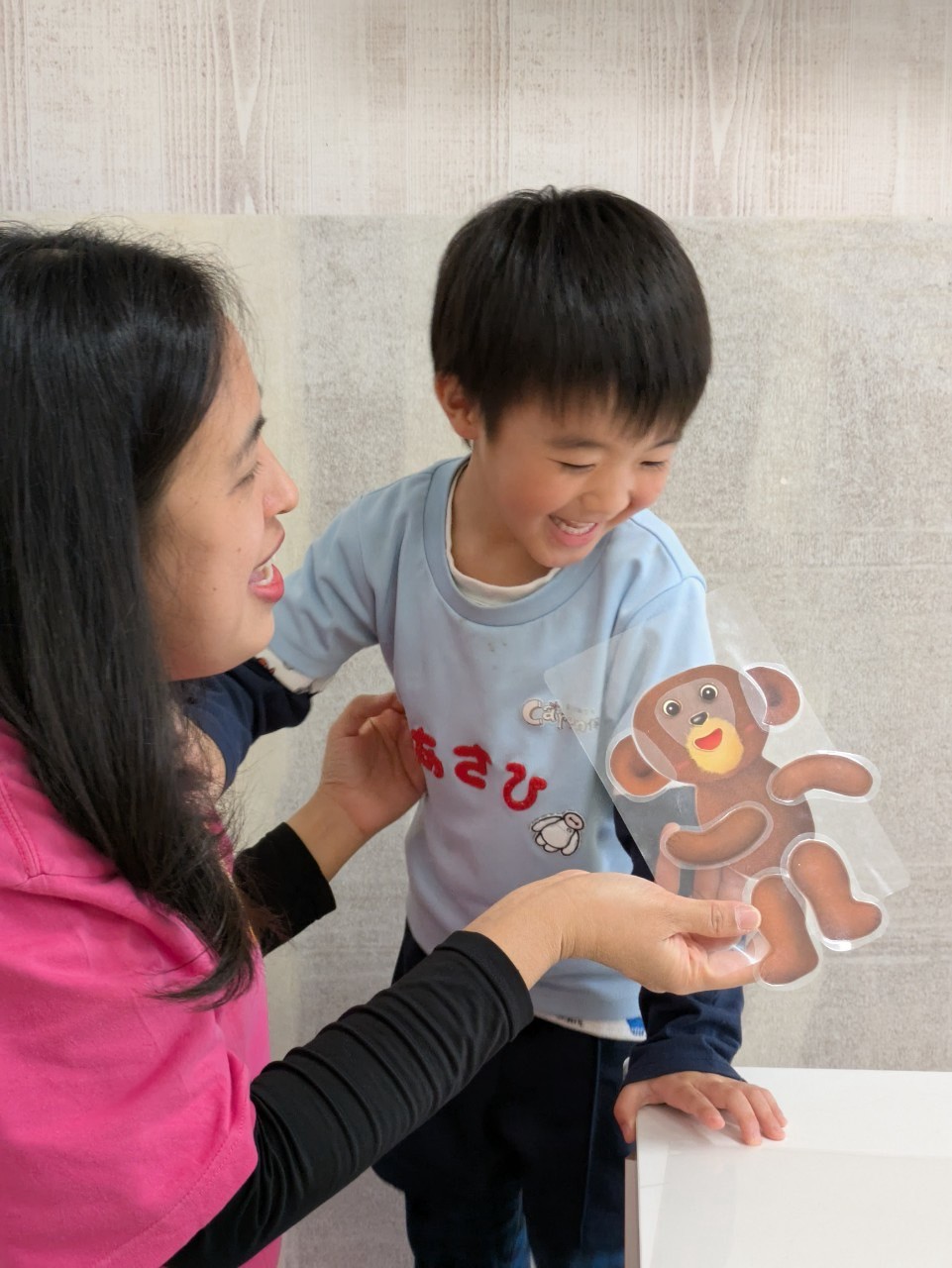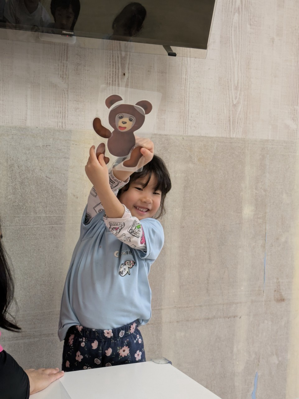 クマさんの耳や口などの英語を学んだり、、実際にパーツを並べたり、英語の絵本を読んでもらったりと盛りだくさん😆「start‼️」の合図でタイム測定しながら、クマさんを組み立てていきました😆