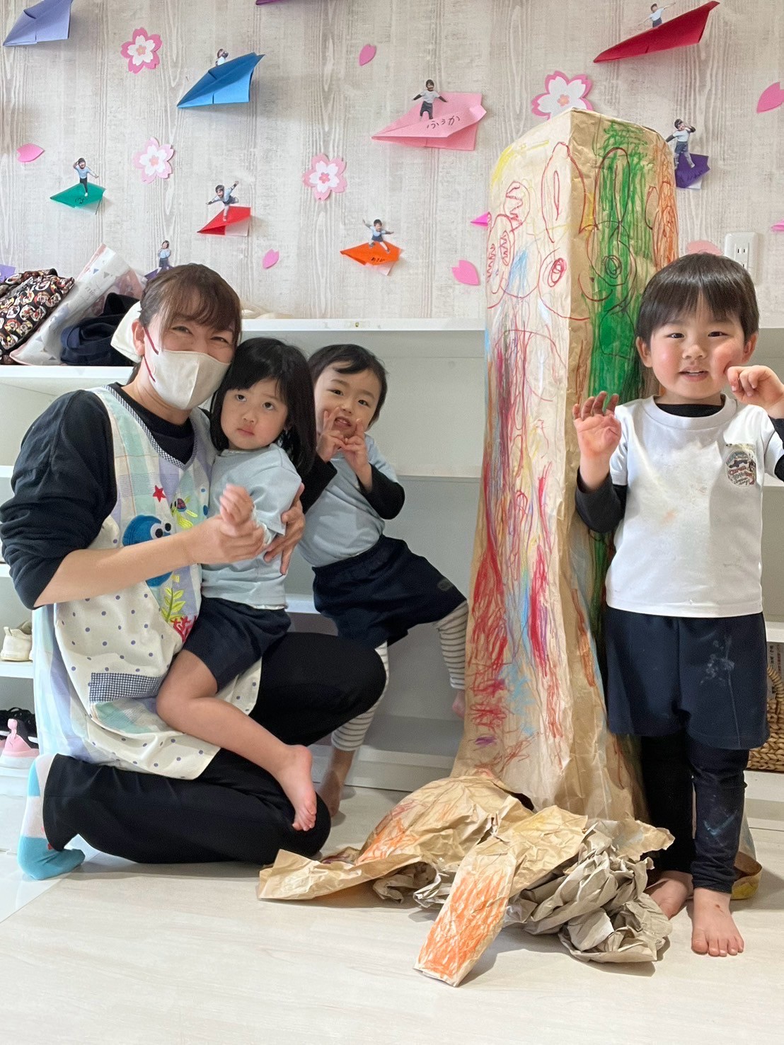 ダイナミックに腕を動かしながら、大きな紙にたくさんの色を使いながら絵を描いて楽しむ子もいて、大満足な様子の子どもたちでした😍【うさぎ、こあら、きりんぐみ】