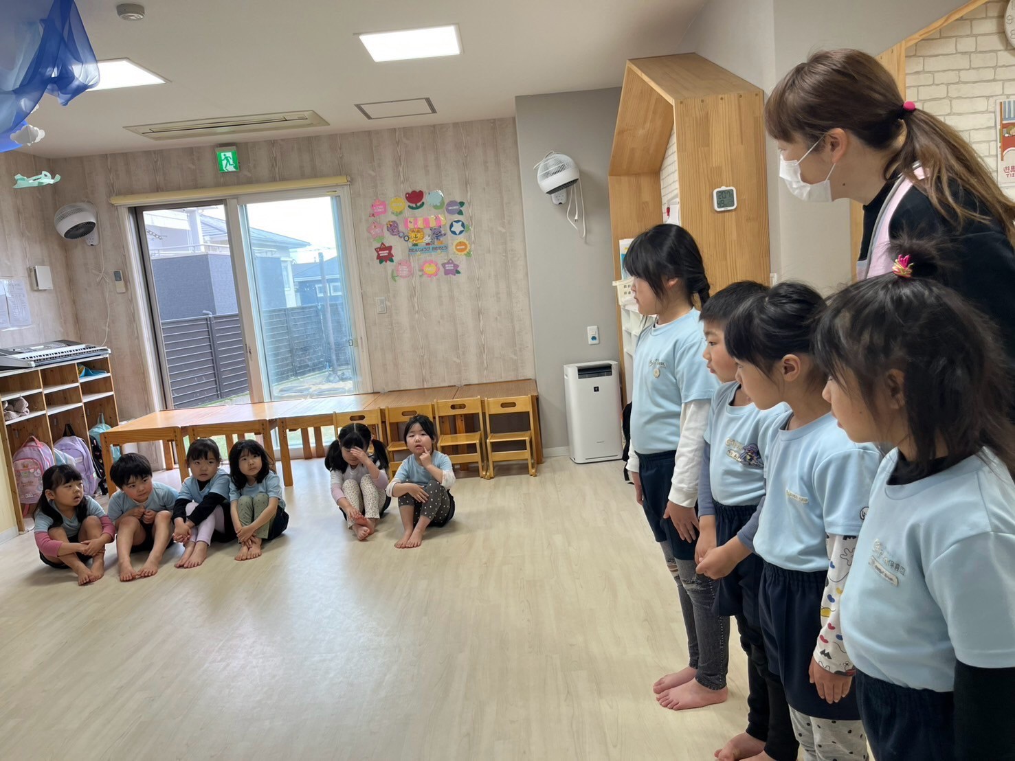 昨日の卒園式で頑張ったきりん組さん🦒朝の会でみんなにお礼を言いました✨こあら組さんも背筋を伸ばして参加していたので、みんなに褒められましたよ😊