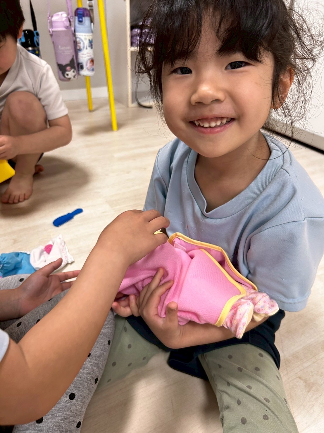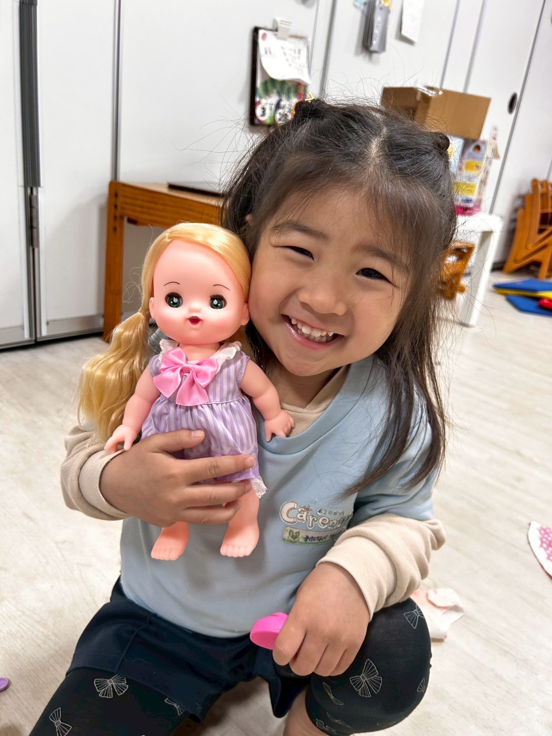 そのあとは、新しく増えたメルちゃんのお友だちと遊んだり、マットでお家を作ったりしてゆっくり遊びました💖今年度最後になる3月のご褒美シールももらってニコニコのみんなでした😆いよいよ月曜日が今年度の最後の登園日になります🥺お休みなくみんなで過ごせるといいなと思います😌