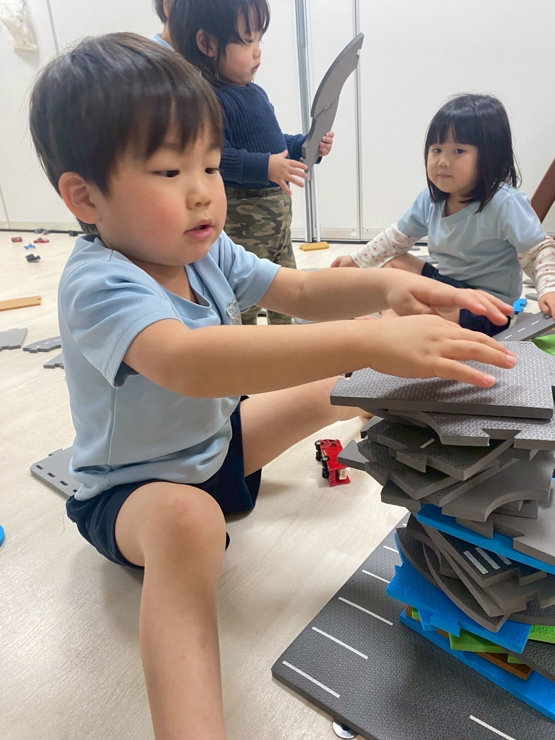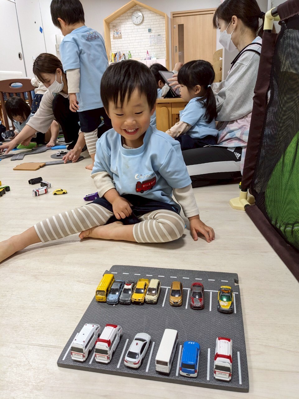 マットの道路を上手に並べて駐車場も作り沢山車を並べて遊びましたよ😊また沢山遊ぼうね🎶