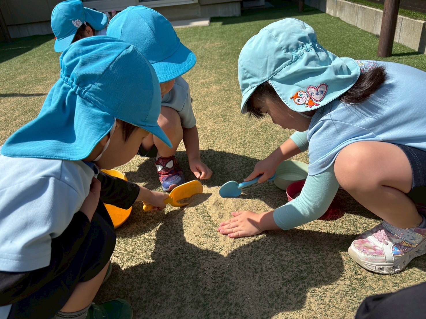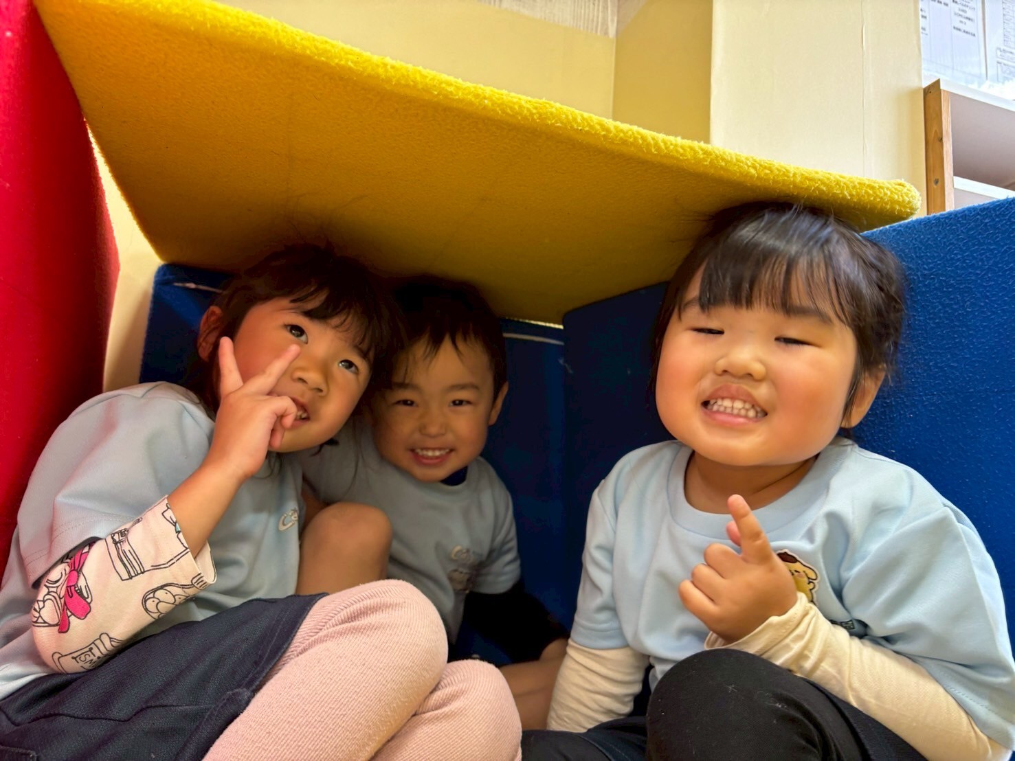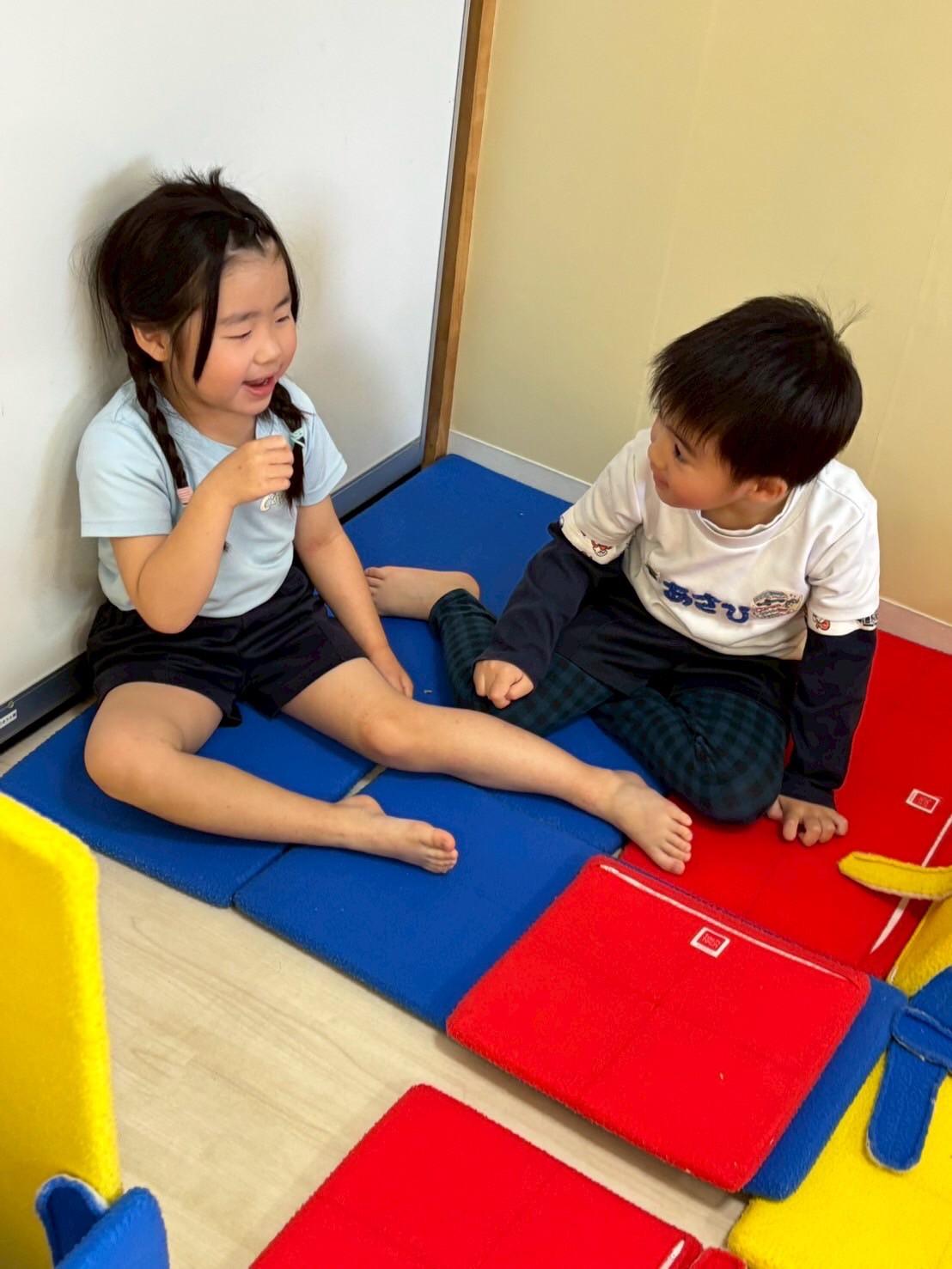 レッスンが終わった後は園庭で砂遊びをしたり、お部屋でマットを使いお家づくりをして遊びました😊