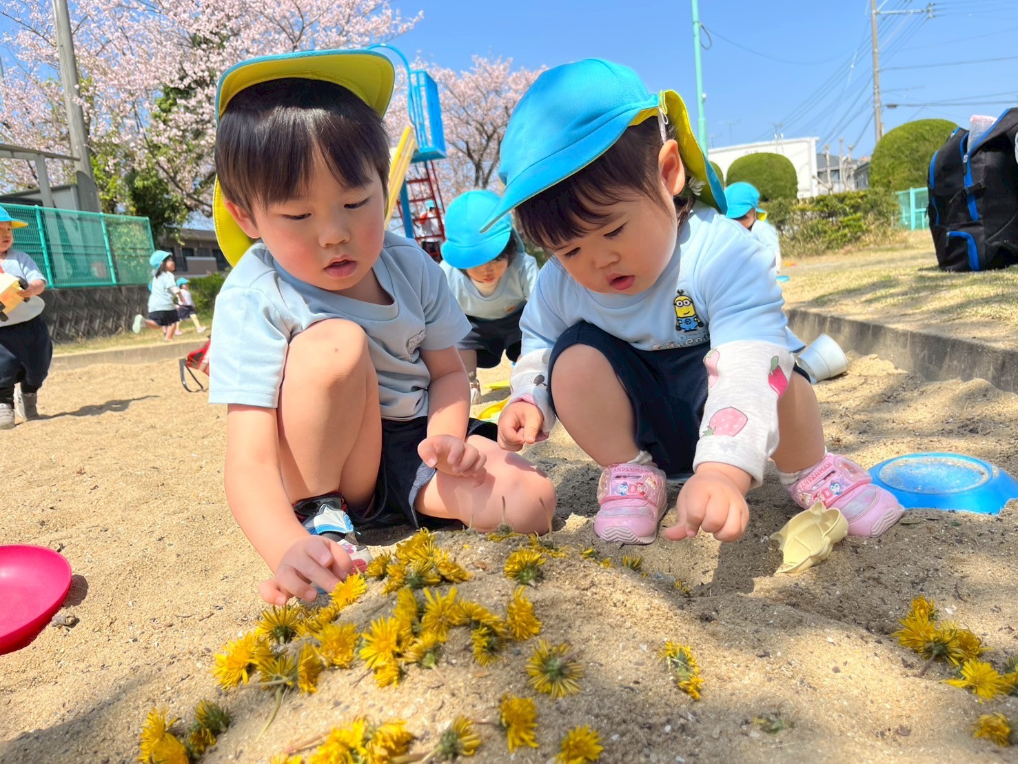 桜の花びらが舞い散るなかみんな思い思いに好きな遊びを楽しみました🌸