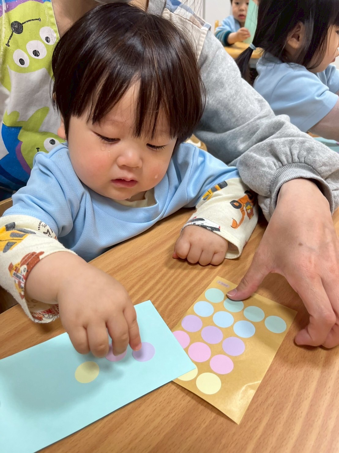 積極的に指先を使って何度もシールを貼って楽しんでいて、積極的にクレヨンを掴み、色も選びながら表現遊びができる子も多かったです😍