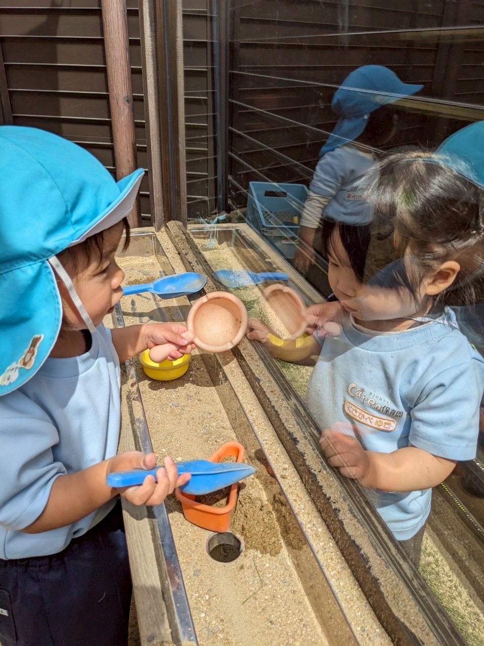 砂で作ったケーキ🎂やおにぎり🍙をみんなでパクパク‼️