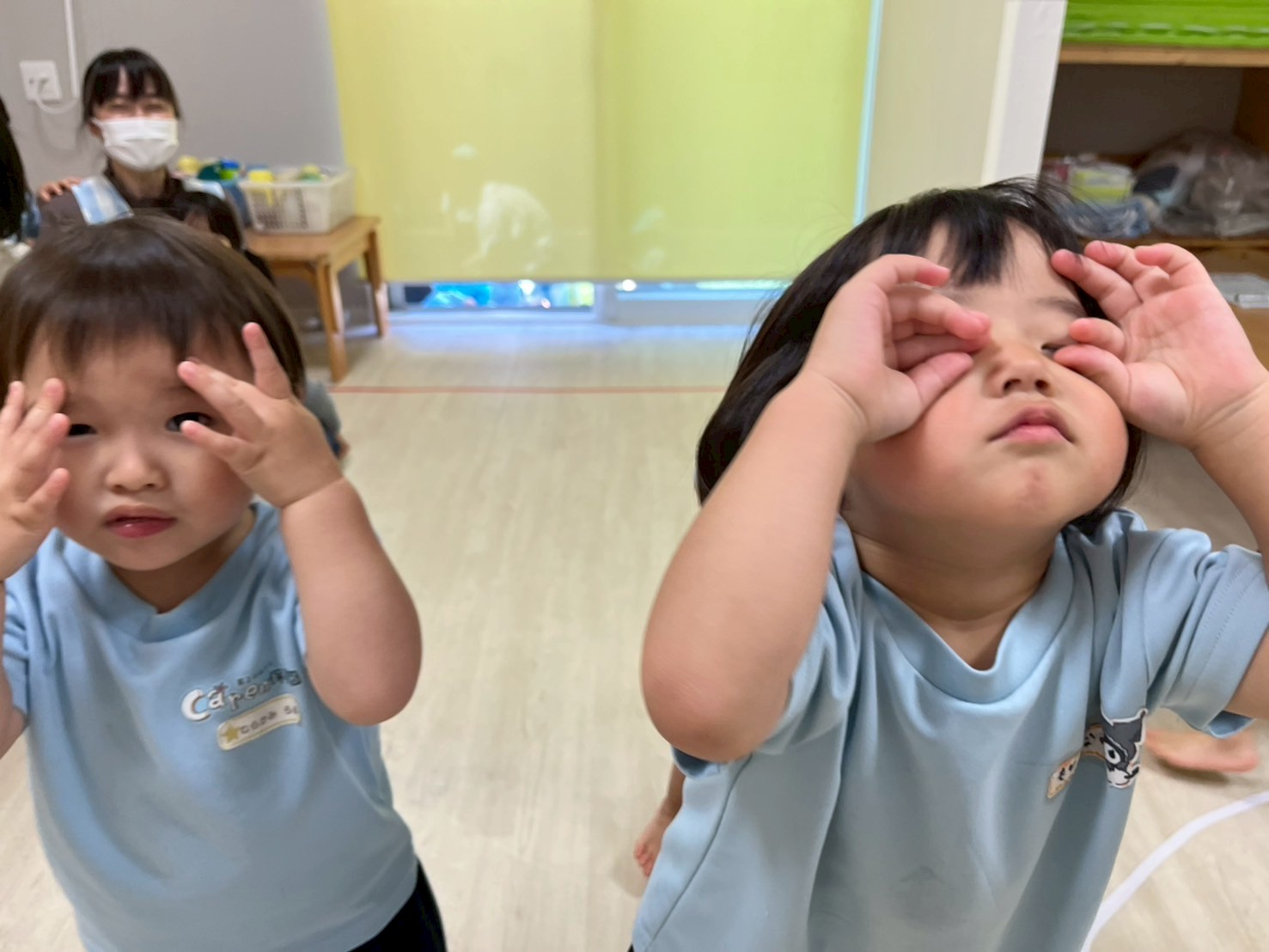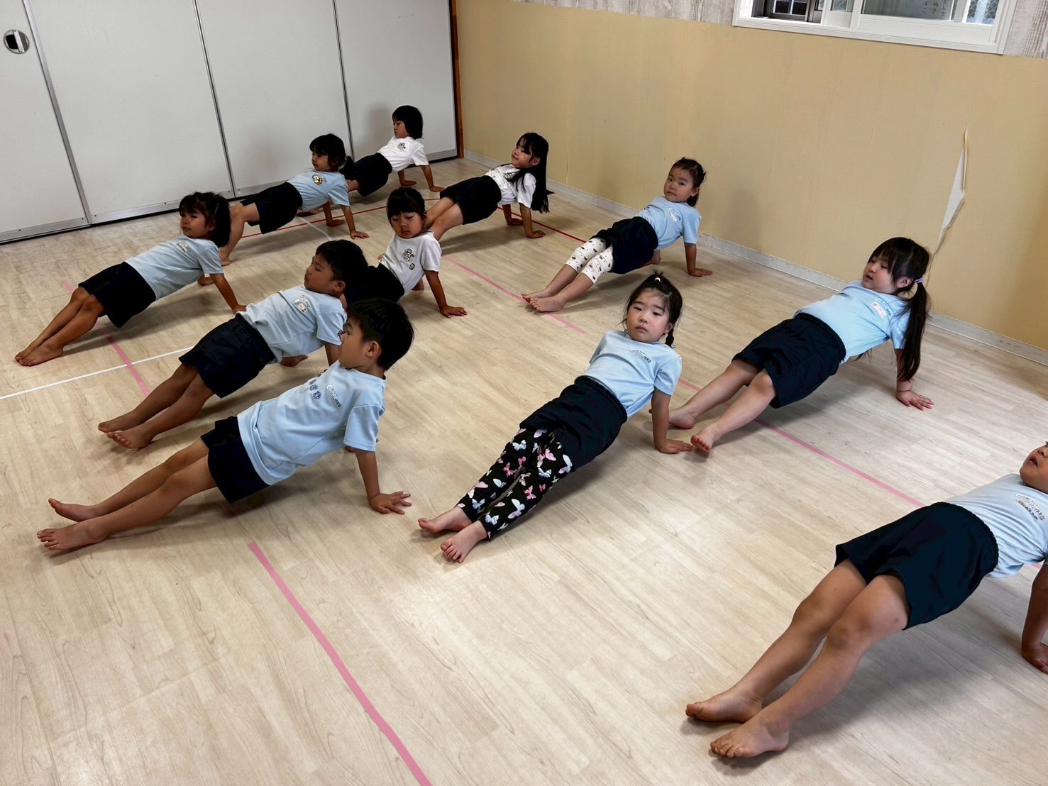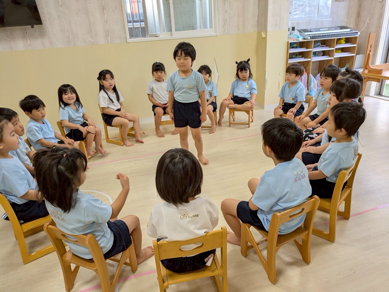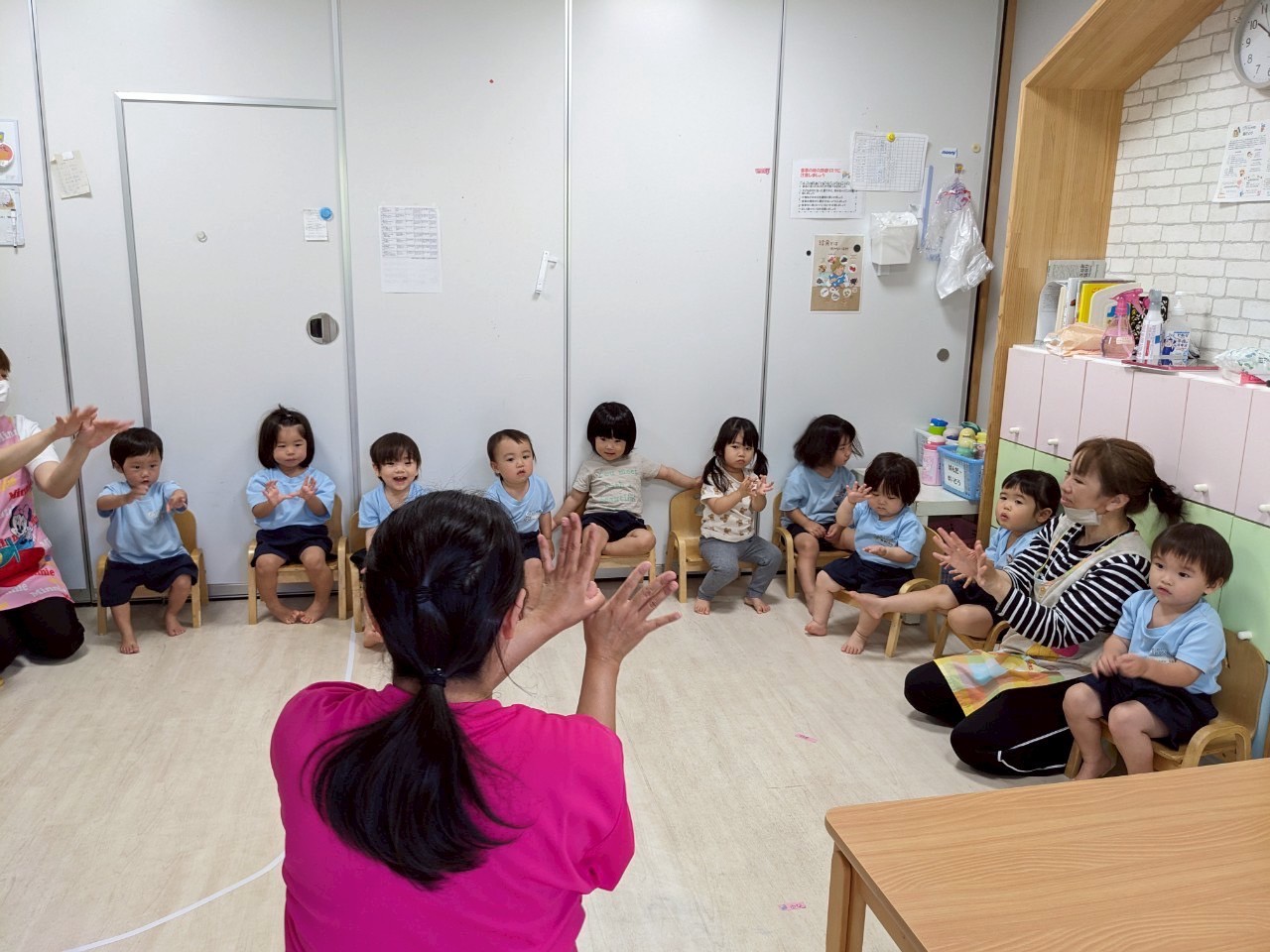 身体を動かすことも積極的にできていて、リズムに合わせて手拍子や全身運動を意欲的にしていたかわいい子どもたちでした❤️