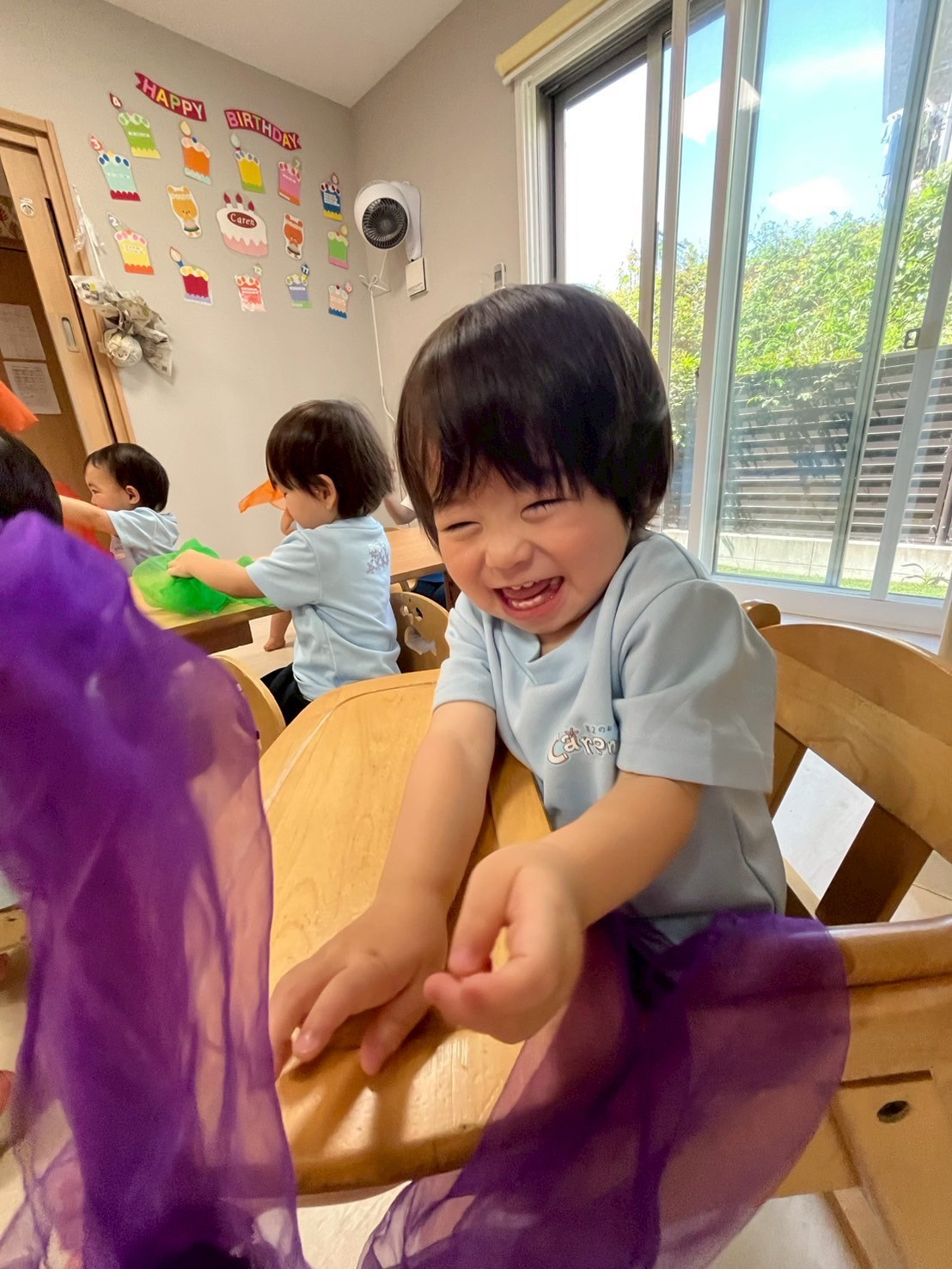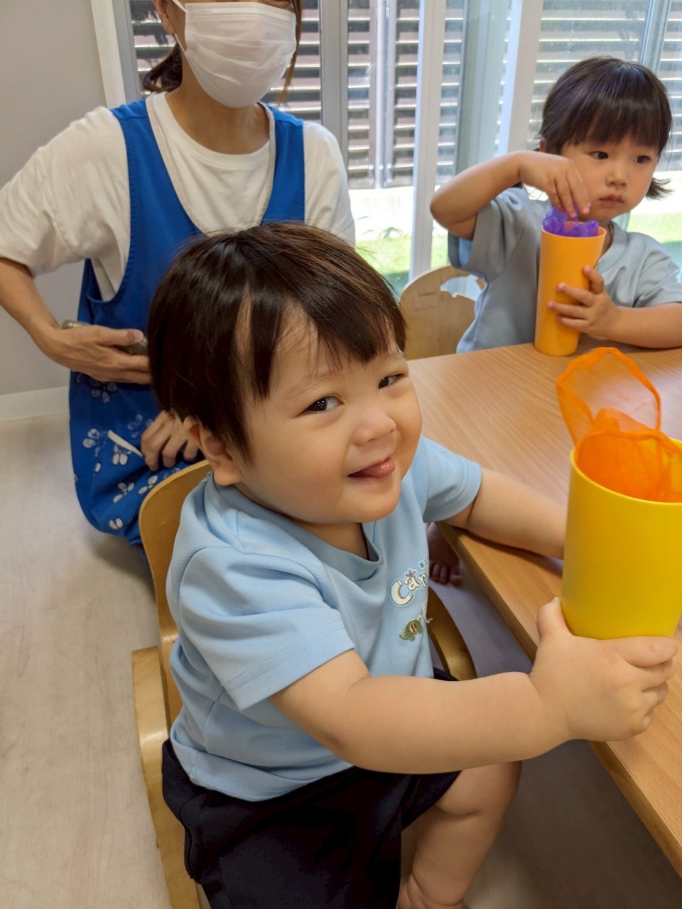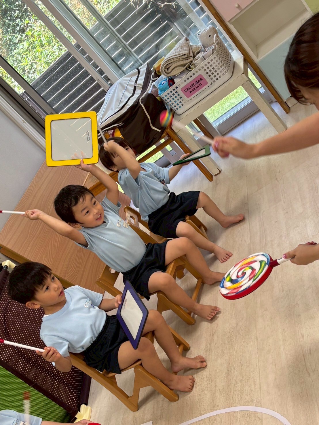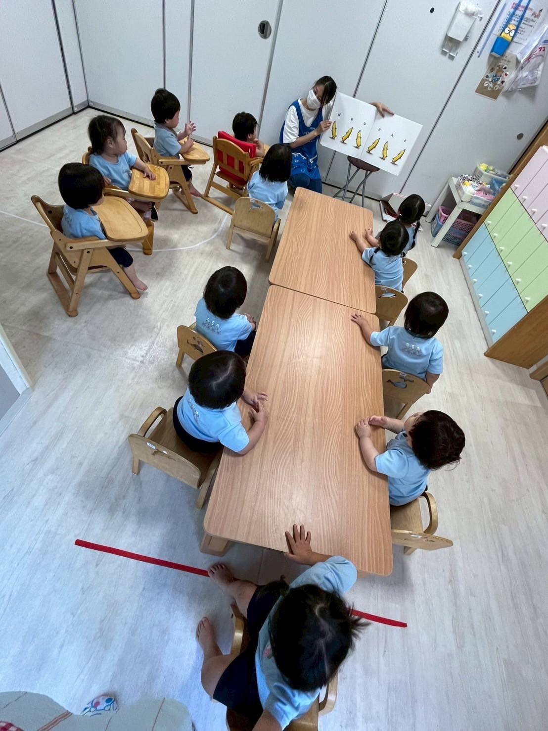 今日はみんな大好きなだるまさんシリーズ絵本を読みからスタート😊「だるまさんが…」に合わせて体を動かしてみんなキラキラ笑顔で楽しむ姿がとても可愛かったです🥰