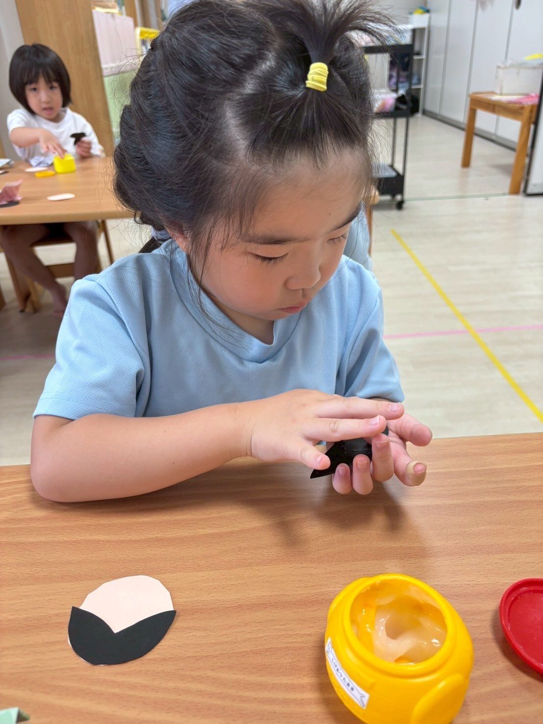 今日は絵本の先生の読み聞かせのあと、月の製作で織姫と彦星を作りました☺️💕折り紙を選ぶところから始めて折ったり、貼ったり、顔を描いたりと様々な行程がありましたがみんな最後まで集中を切らすことなく仕上げることができました👏✨今日は途中まで仕上げて、残りは後日かな?と思っていましたが、成長を感じましたよ🤗リトミックでは音当てクイズやフープや太鼓を使い楽しいレッスンでした🎶💗こあらぐみさんは近くの畑に野菜の収穫にも行きましたよー❣️