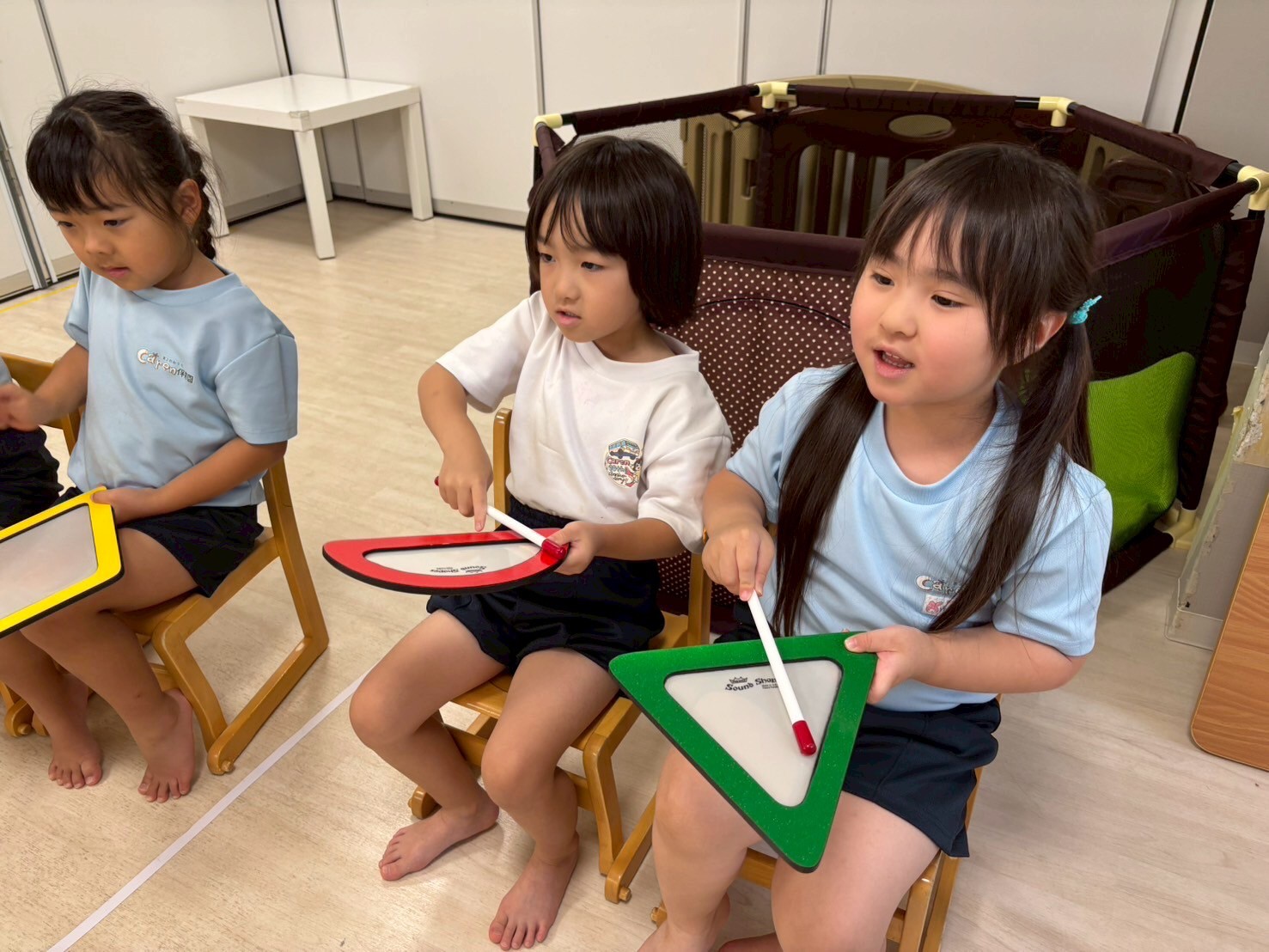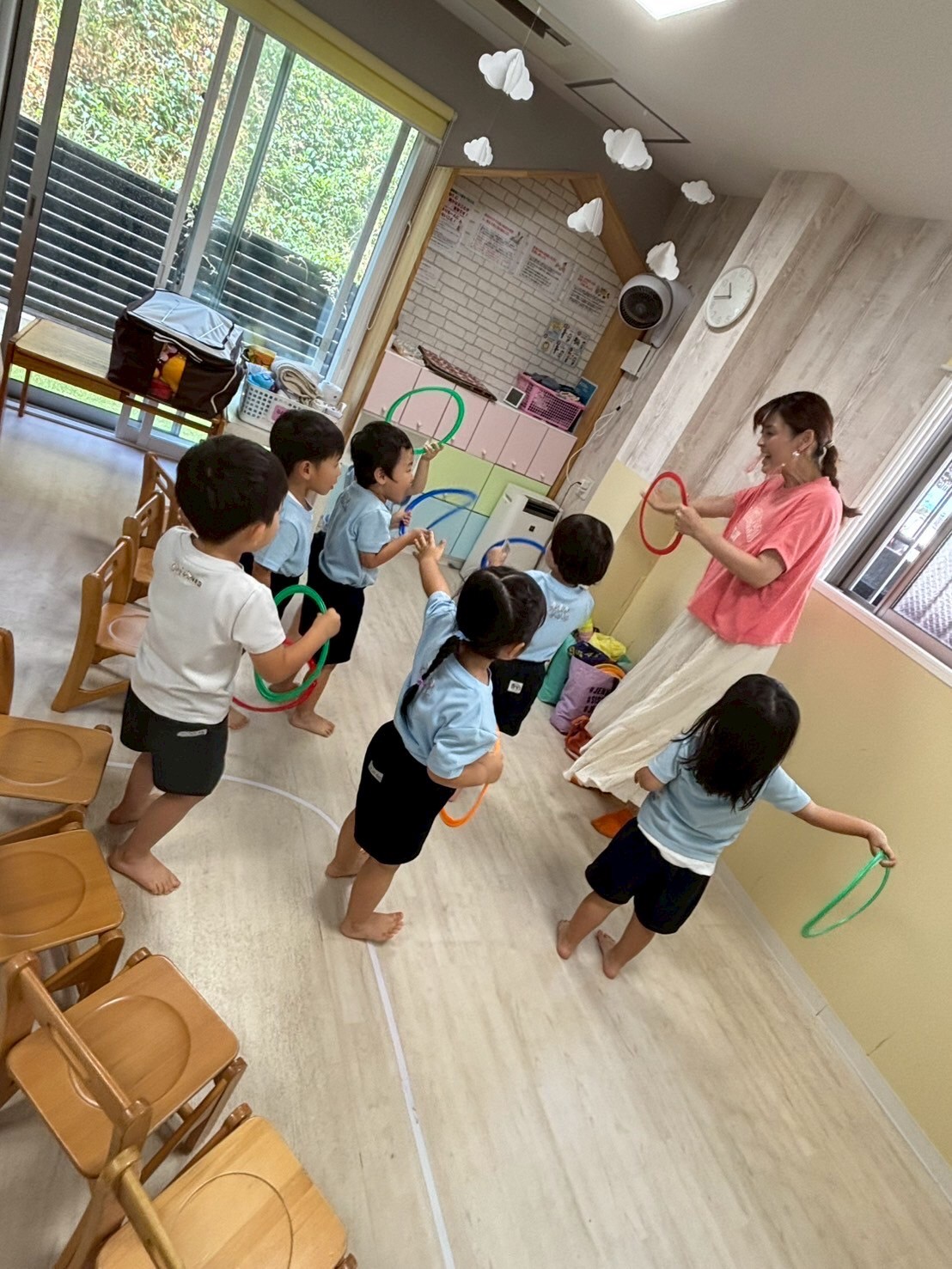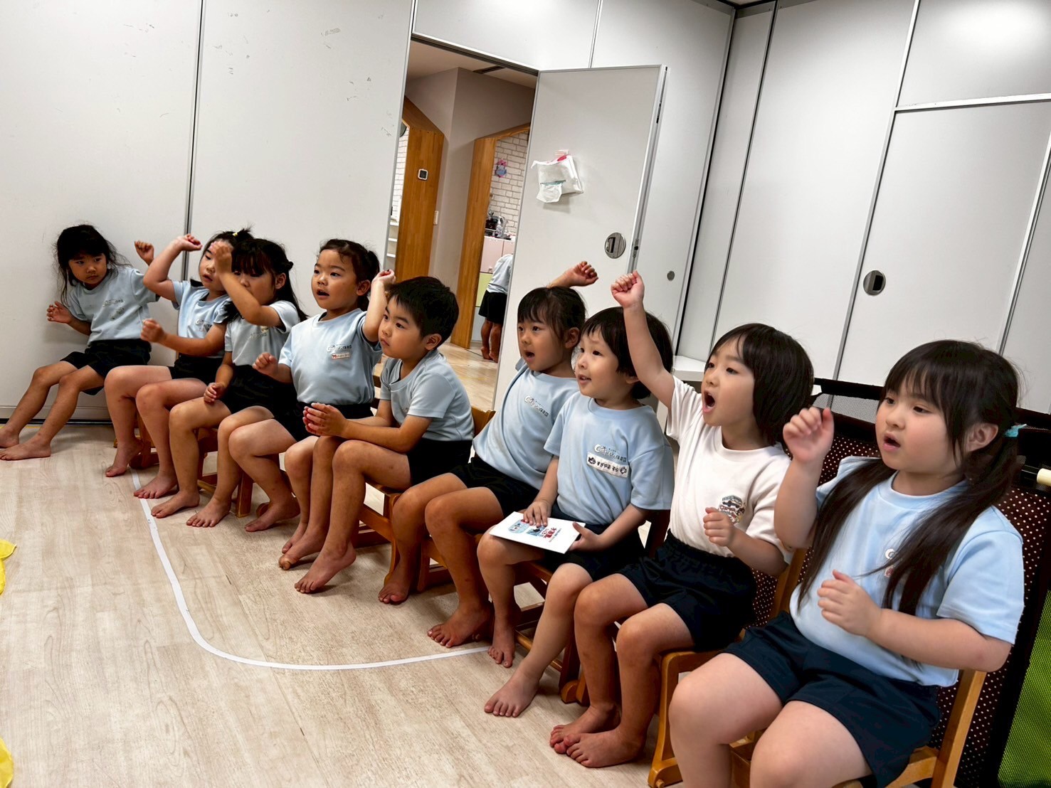 リトミックではスピーカーから流れてくる音楽と動物の鳴き声に興味津々な子供たち✨「ワンワン!」「ニャンニャン!」と元気よく答えて楽しんでリトミックに参加することができていました☺️先生のお話も集中して聞くこともできていて成長を感じることができました✨