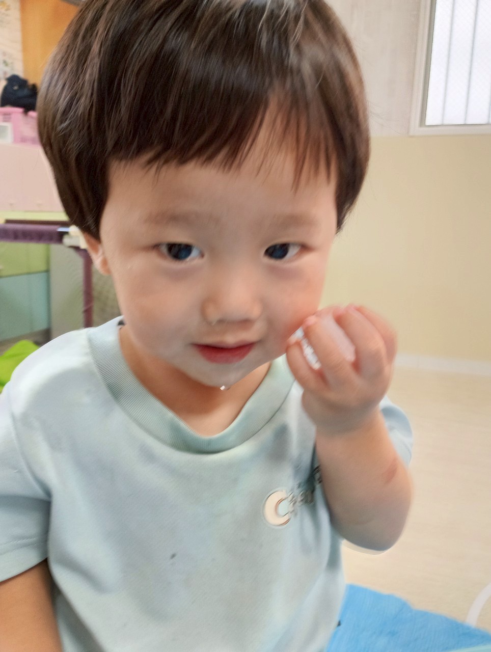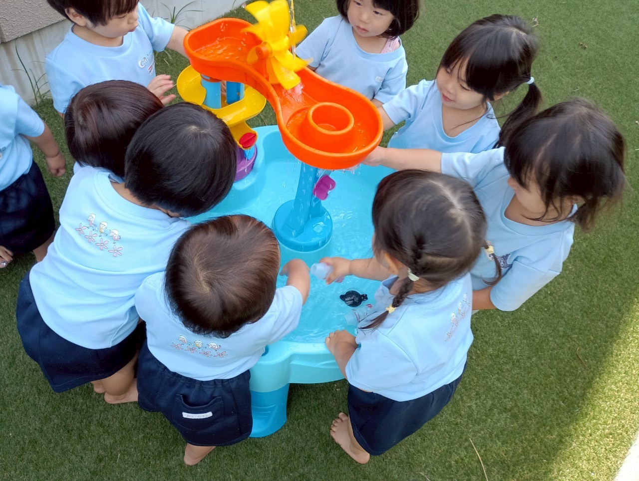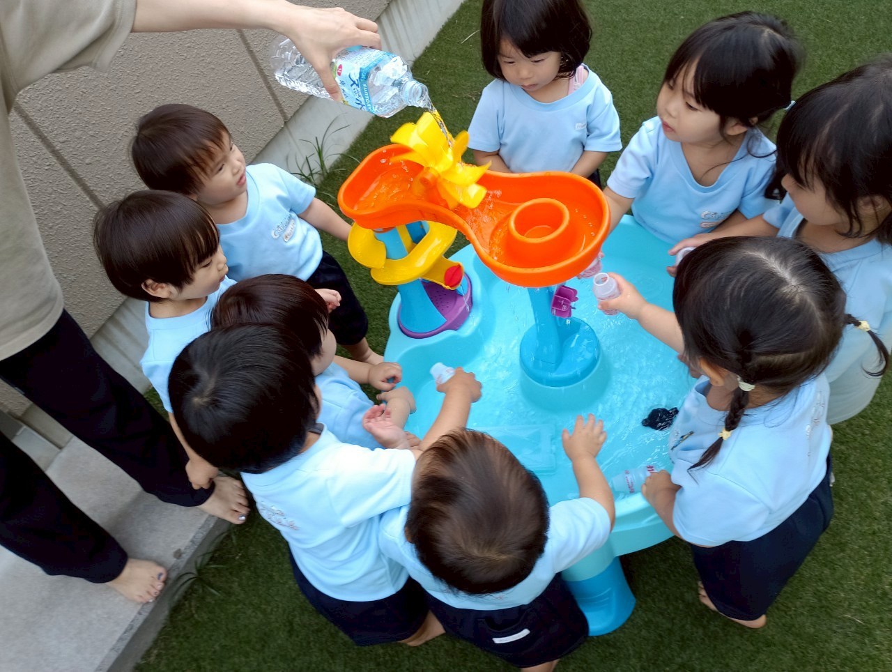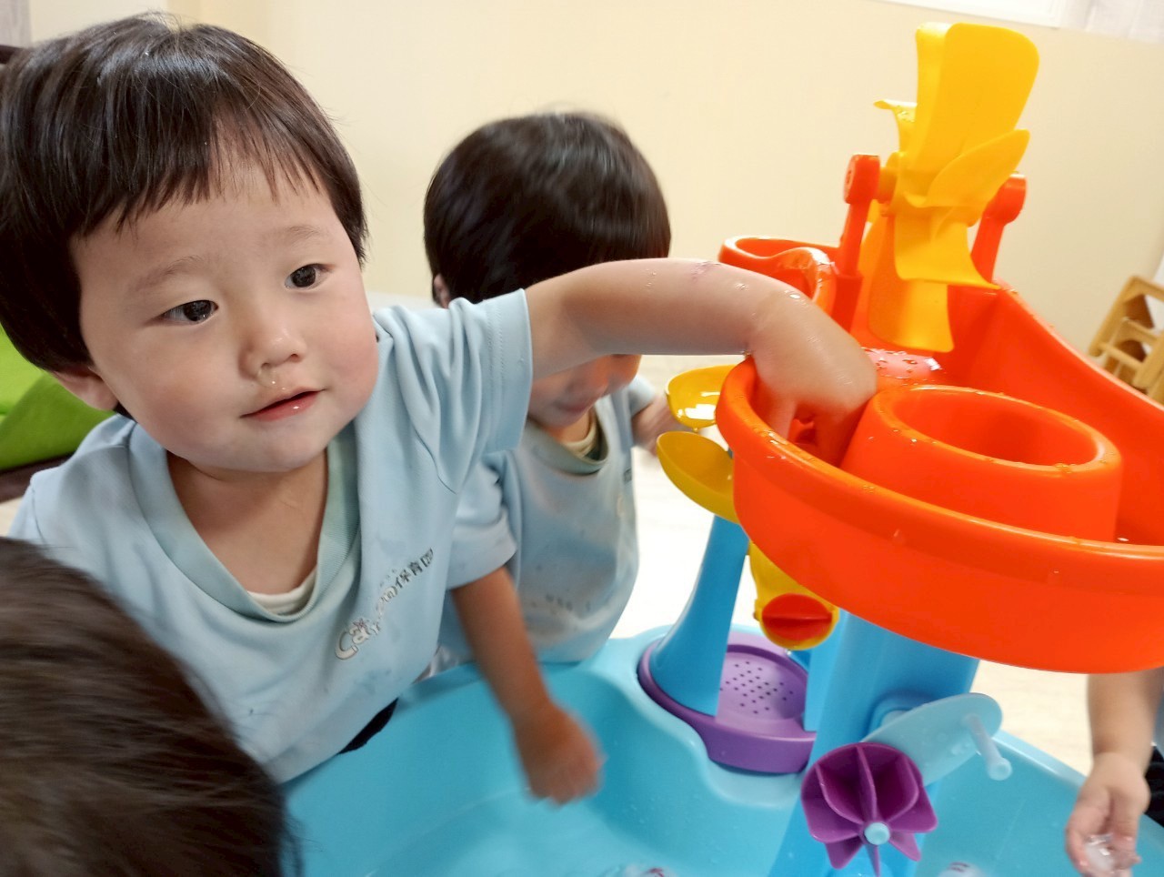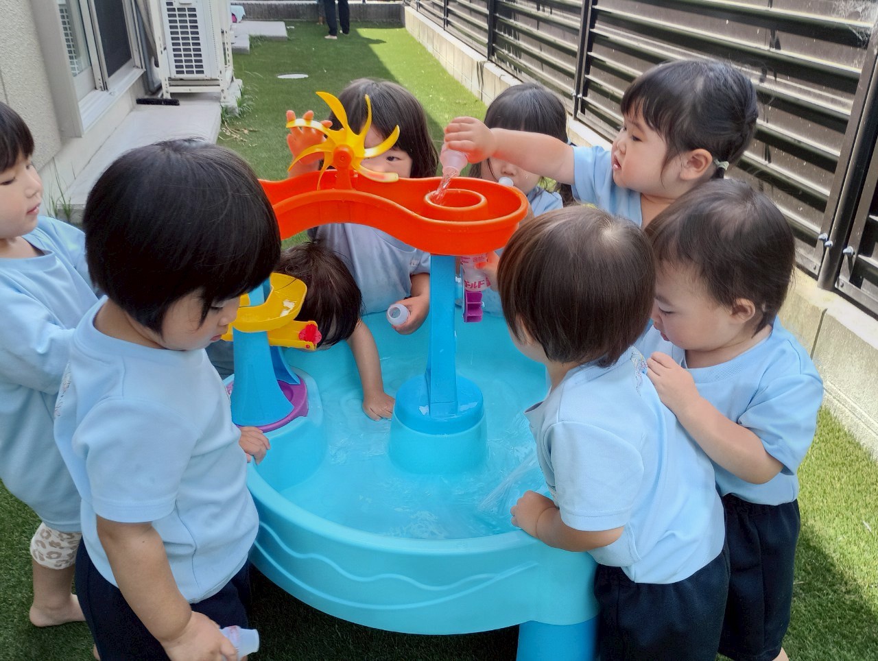その間に水遊びを楽し見ましたよ🚿容器に水を入れて運んだり上から落ちてくる水を見てキャキャー喜んでいました❤️水遊びが待ち遠しいですね🎶【うさぎ・こあら・きりんぐみ】