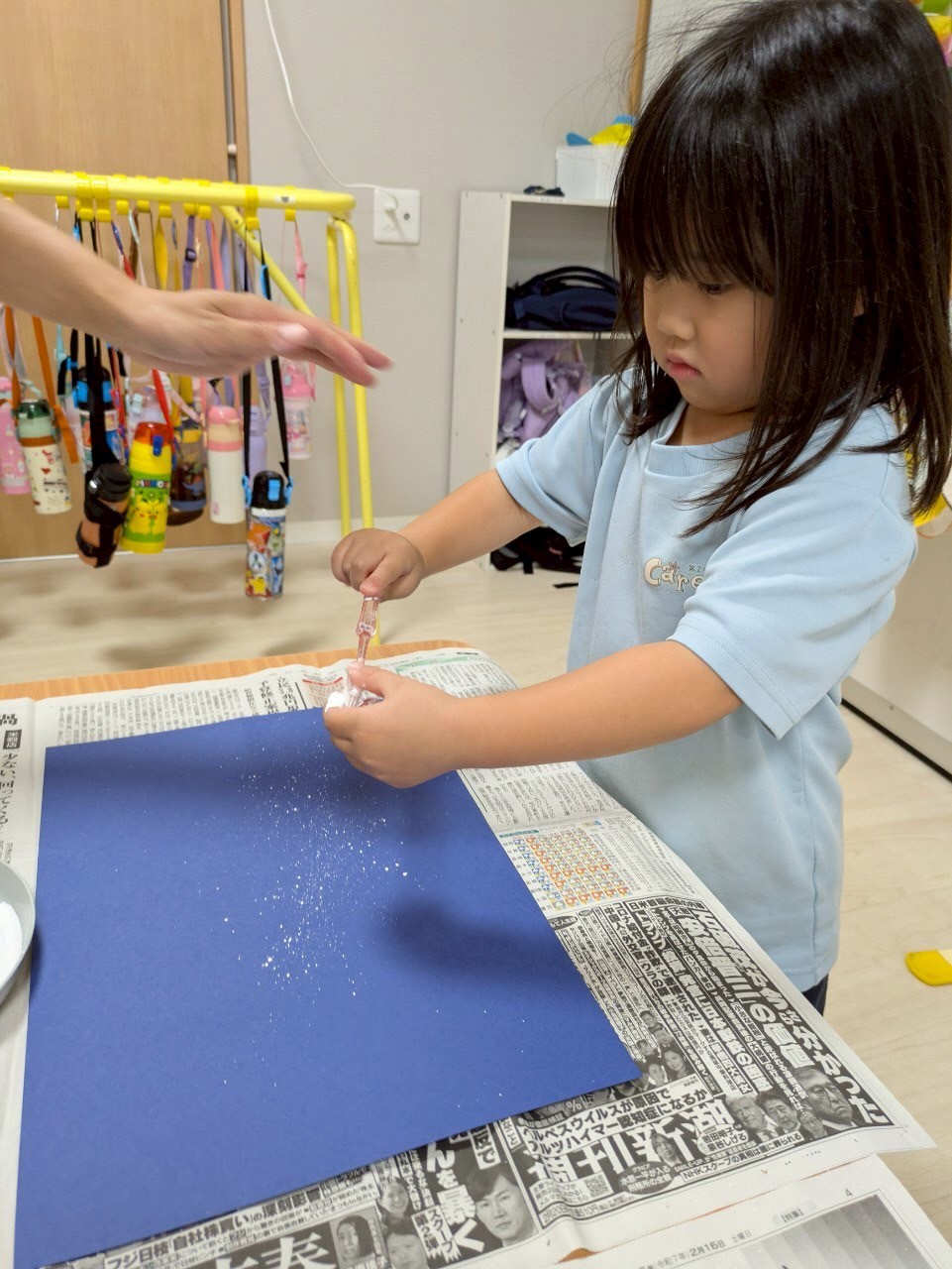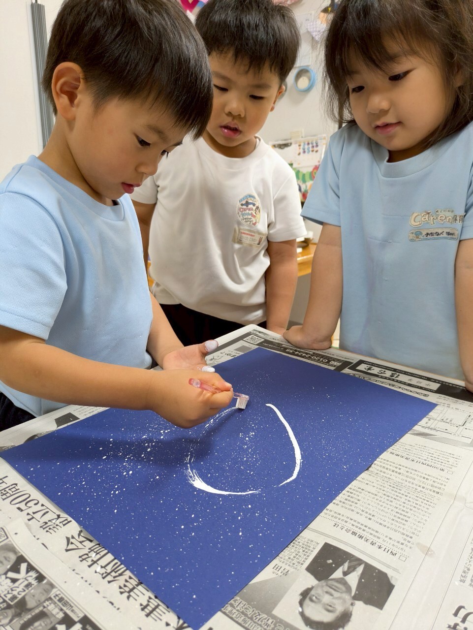 製作では織姫と彦星を貼る画用紙に星空を、スパッタリングという技法を使って作りました🤗天の川も描き、綺麗な星空が出来ました✨✨【新宮園の今日の給食です】