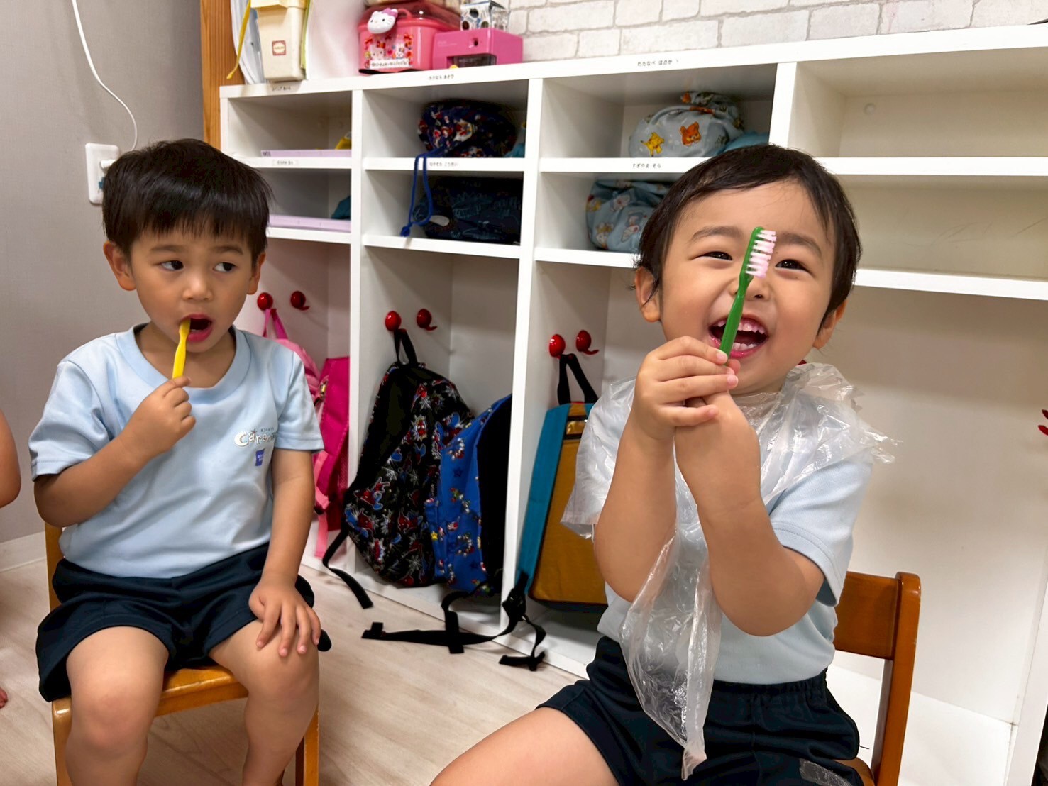 赤くなっていた歯が白くなり嬉しそうな子どもたちでした💖歯磨き上手のご褒美シールももらいましたよ🥰