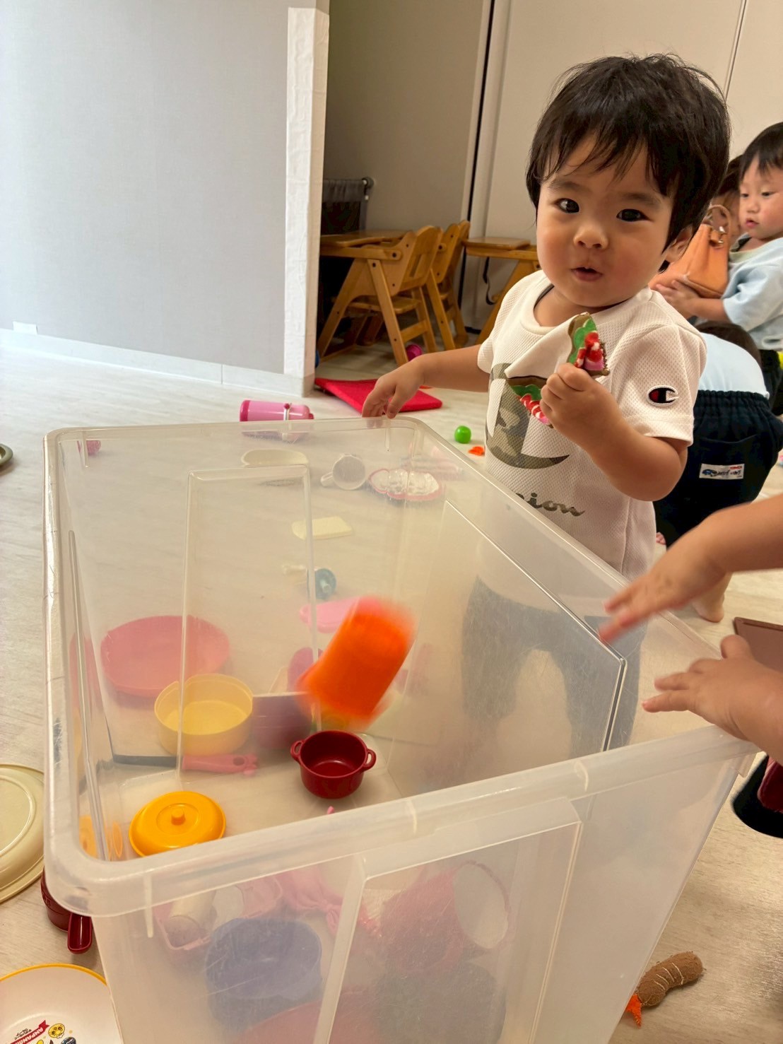 その後はおままごと遊びをしました☺️お友だちとお話ししながらお料理したり、作ったものをお皿に入れてお友だちや先生に持っていく姿も見られていました☺️