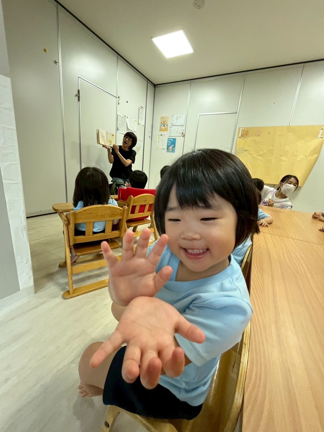 今日は絵本の先生が来てくれました🤗『ぞうきばやしのすもうたいかい』では、みんなも歓声を上げながら応援して楽しみましたよ❣️カブトムシが優勝した時には、自然と拍手が起こっていましたよ👏💕