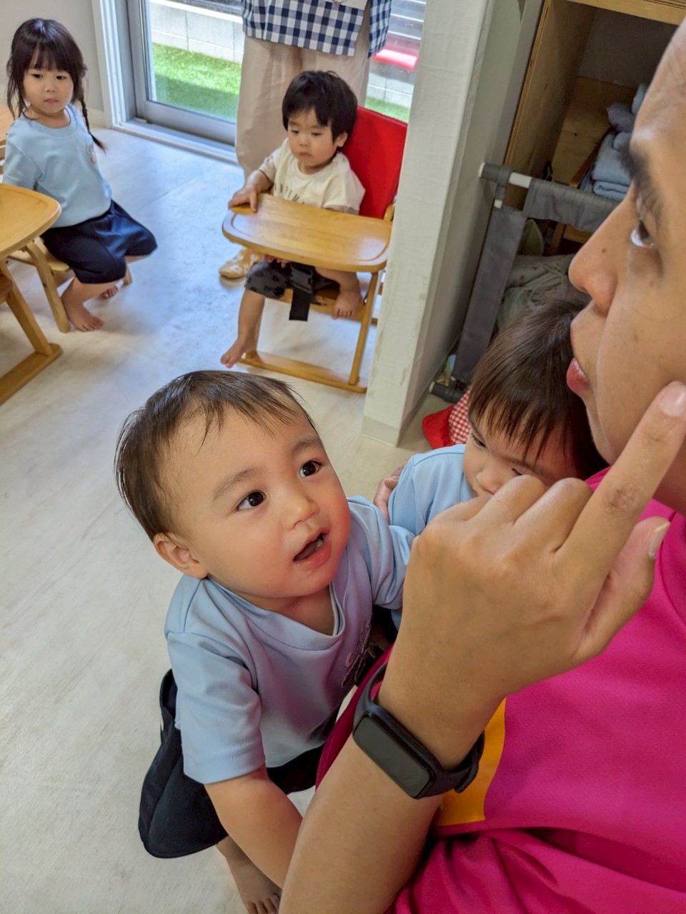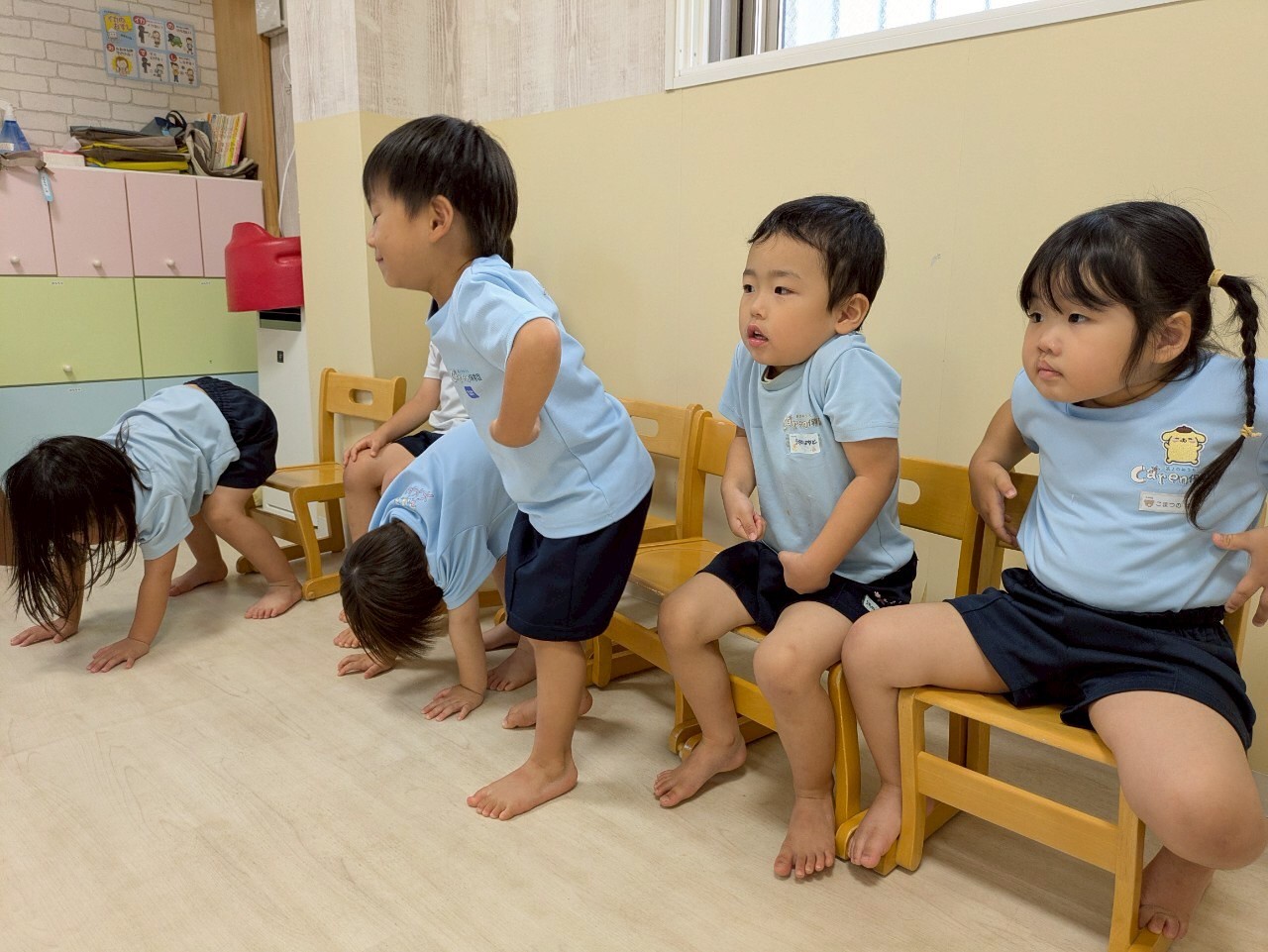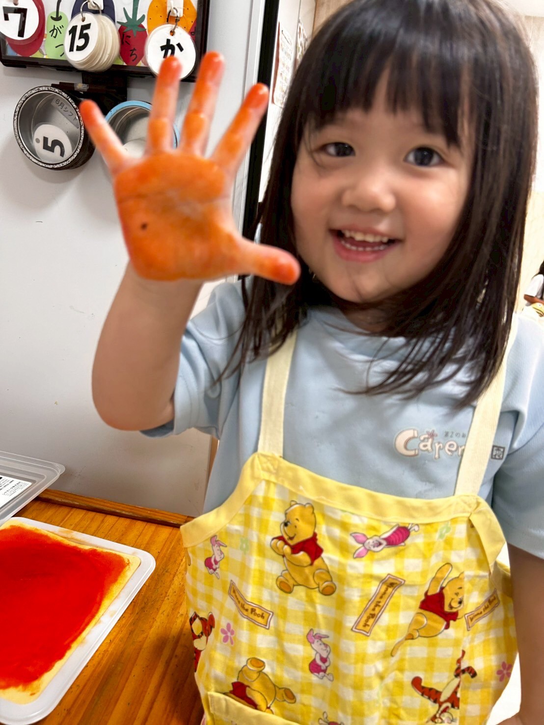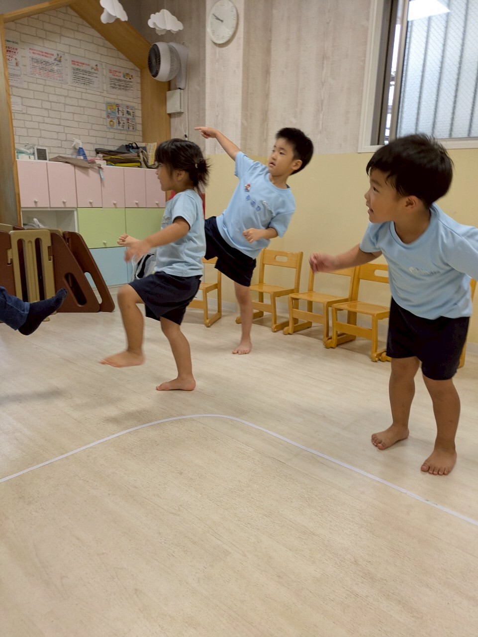 今日は英語レッスンの日🌟今日のテーマも動物でみんなで絵本をみながら様々な動物の真似をしましたよ😆アルファベットカードも定着してきているようで、元気な声が聞こえてきましたよ💖レッスンの待ち時間は、月の製作で使う手形をとりました❣️これが何に変身するかは『お・た・の・し・み』です🥰好きなおもちゃでも遊び、お医者さんごっこやままごと、マリオごっこなどそれぞれの役になりきって遊んでいました🤗最後にはみんなのリクエストでゲームをしました🌟曲に合わせてボールを回す爆弾ゲームです🎶笑顔いっぱいで盛り上がりました🤩明日からは水遊びが始まります‼️準備等よろしくお願いします😌まだまだ夏の楽しみがいっぱいですね☺️💕