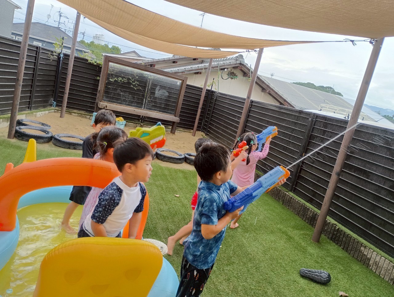 水鉄砲🔫とを友だちと貸し借りしながら、撃ち合いを楽しんでいました‼️