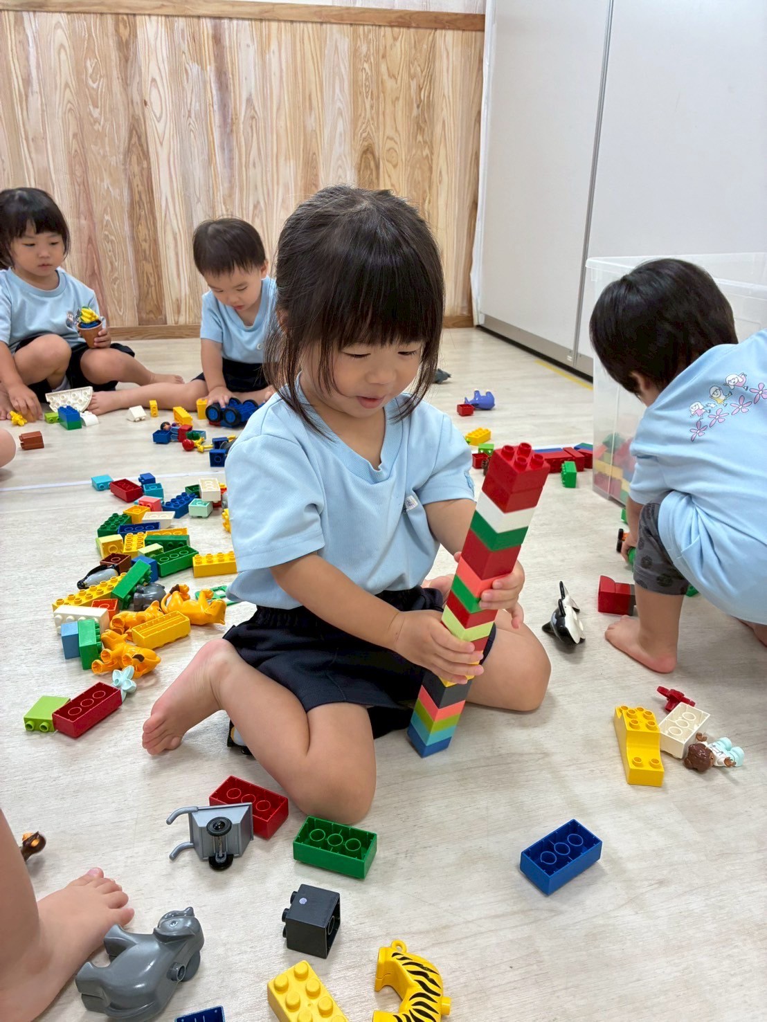 ブロックで「温泉😄⁉️やお家、保育園を作る〜」と張りきって作る姿がとっても可愛かったです🥰