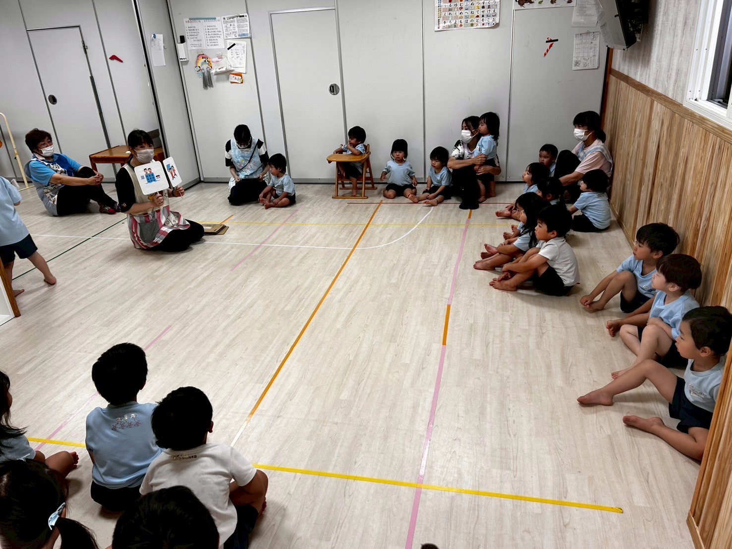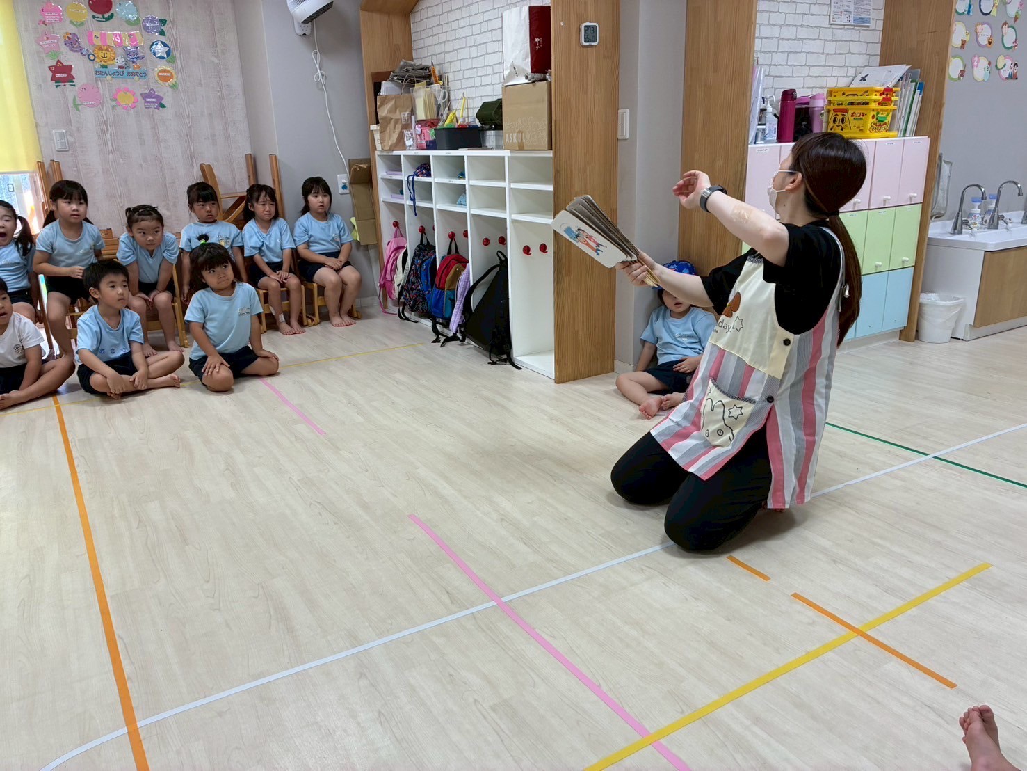 絵本の読み聞かせではお話しに合わせて身体を動かしたり先生と一緒に言ったりと楽しんで参加することができました☺️