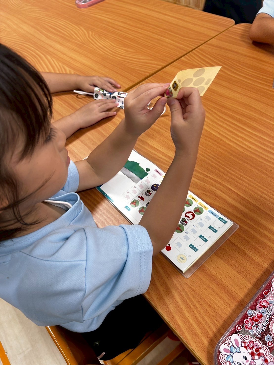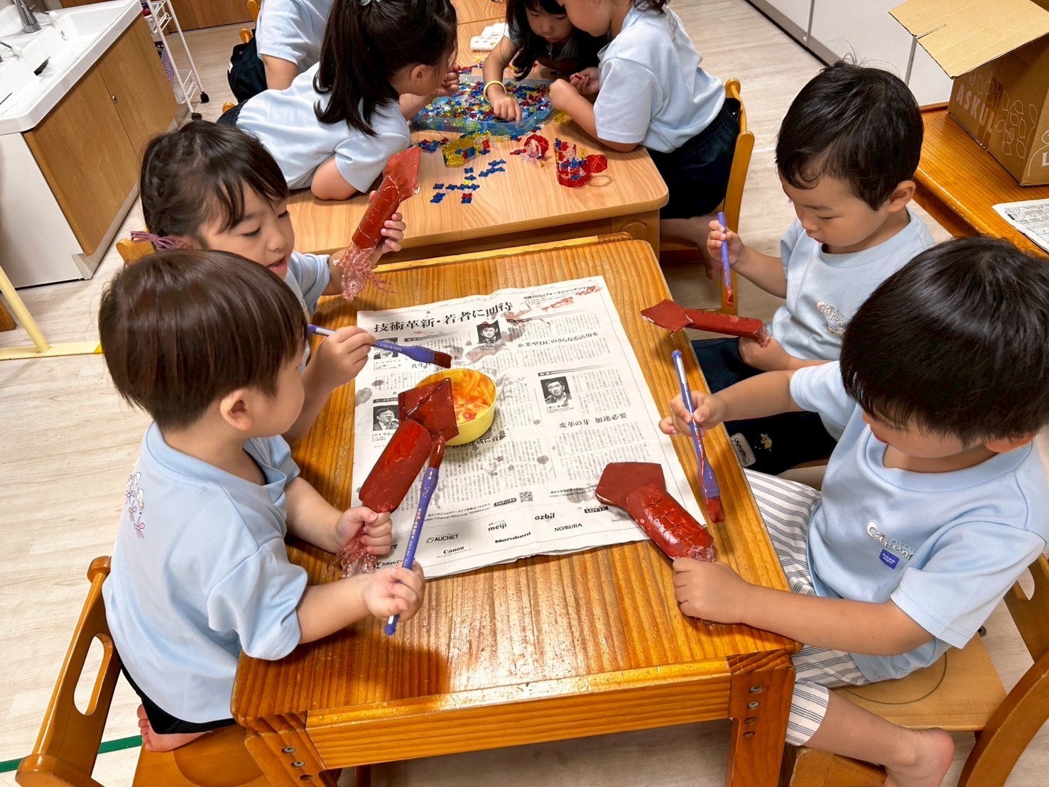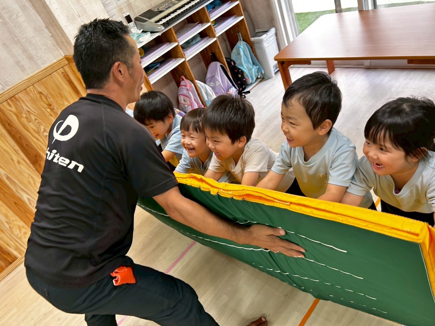 今日は8月の絵本を読んだ後に、体操教室に参加しました❣️今日はてつぼうとマットでしたが、それぞれ合った課題に取り組み、できるようになったことが増えた子もいましたよ💖夏祭りの製作では、イカ焼きに照りをつけてより本格的なものに仕上げていきました✨待ち時間には、LaQで遊び、卒園児さんが卒園アルバムを取りに来てくれたりもして小学校の話を聞くこともできましたよ🤗💕