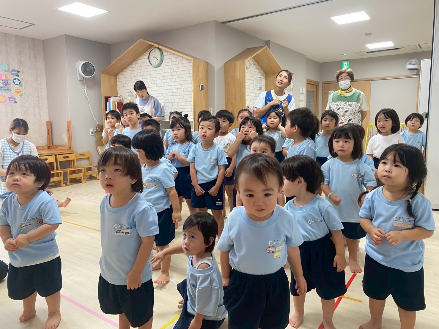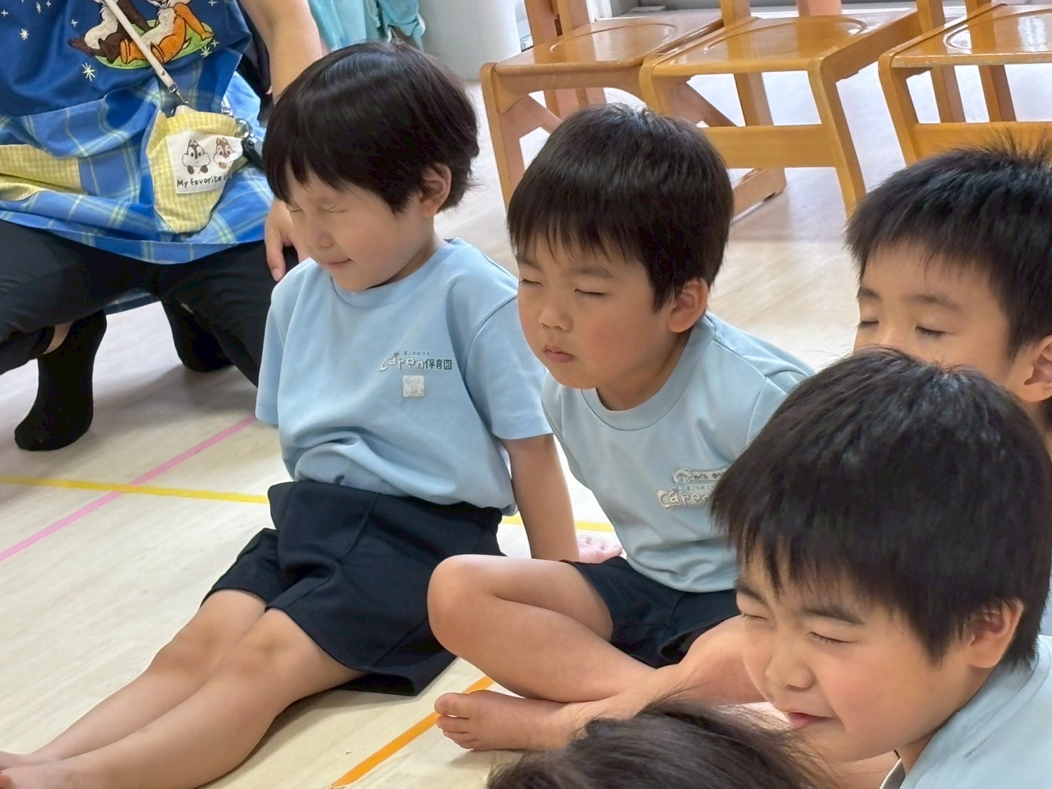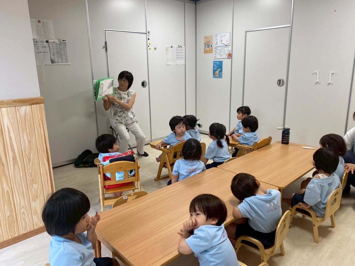 今日は久しぶりの雨の日でした☔雨でも元気いっぱいなお友だち✨絵本の先生が来て絵本の時間からスタート✨✨先生のお話しを笑顔で聞いていましたよ😊