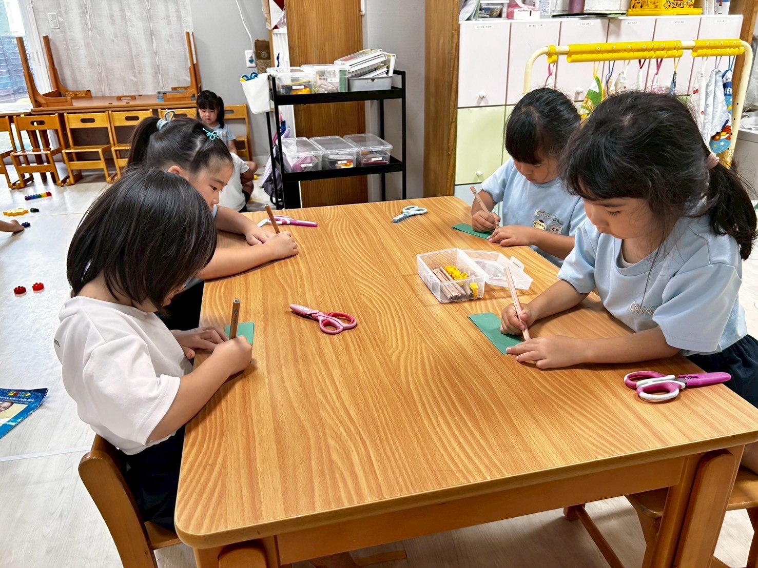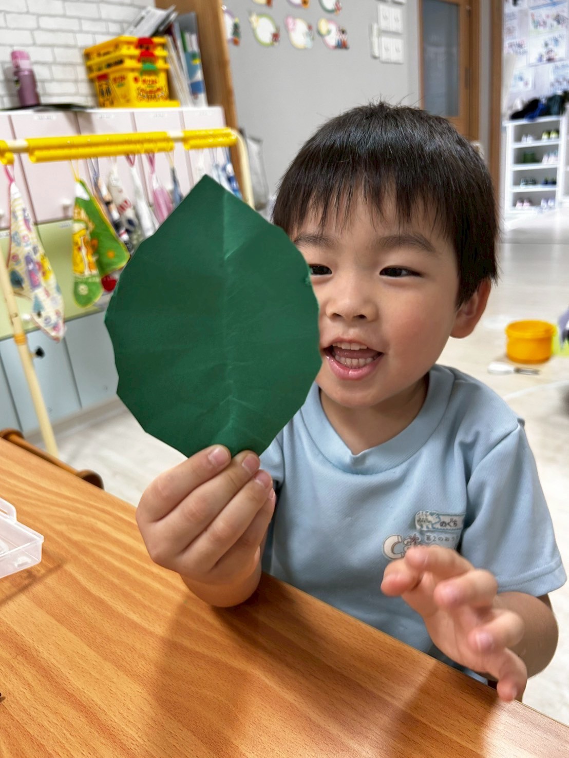 そのあとは夏祭りの看板作りでみんなで大きな木に葉っぱを作りつけました🌳きりんさんには折り紙でクワガタも製作してもらう予定です☺️