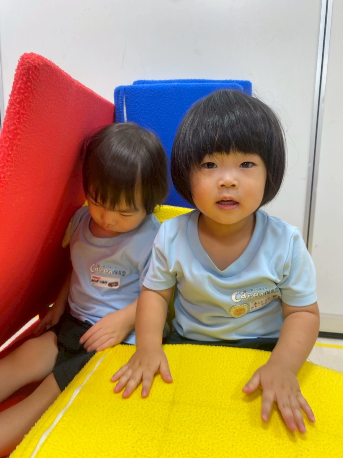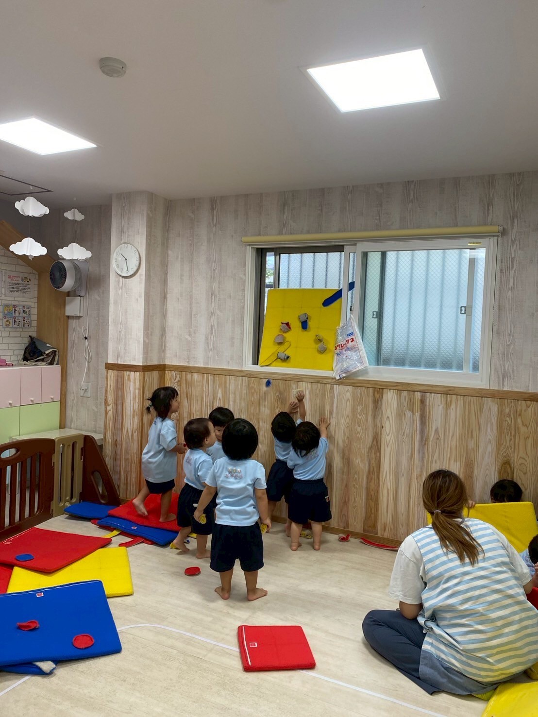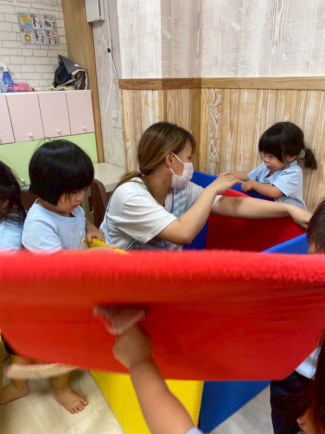 その後はマットをくっつけてお家や道を作って仲良くみんなで遊びました😊上手くくっつけるのが難しい時はみんなで協力してお家を作っていました✨