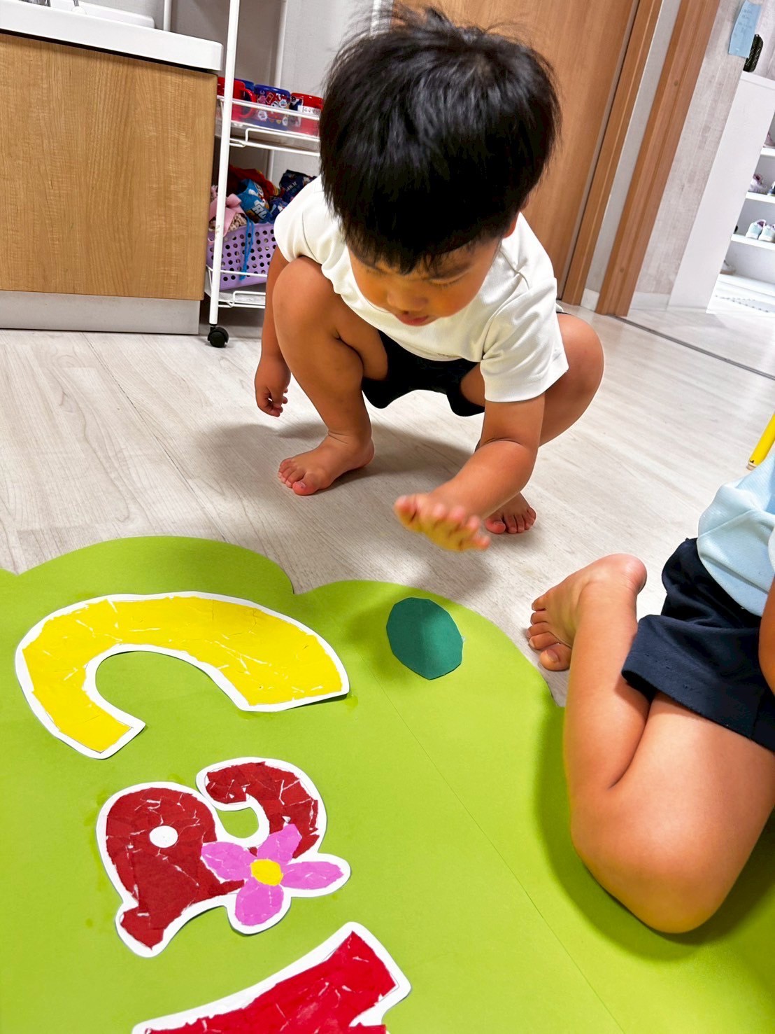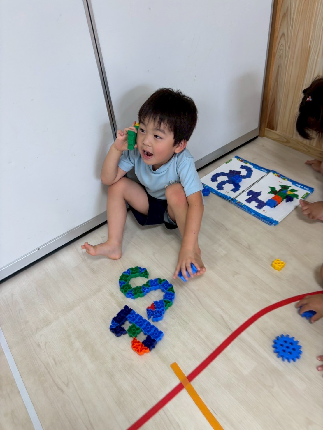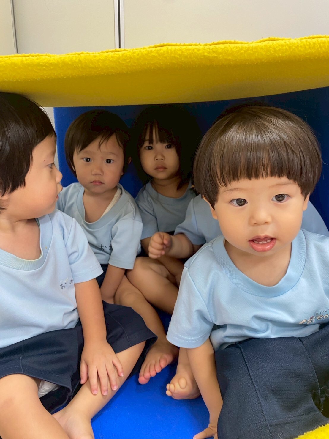 その後はマットをくっつけてお家や道を作って仲良くみんなで遊びました😊上手くくっつけるのが難しい時はみんなで協力してお家を作っていました✨