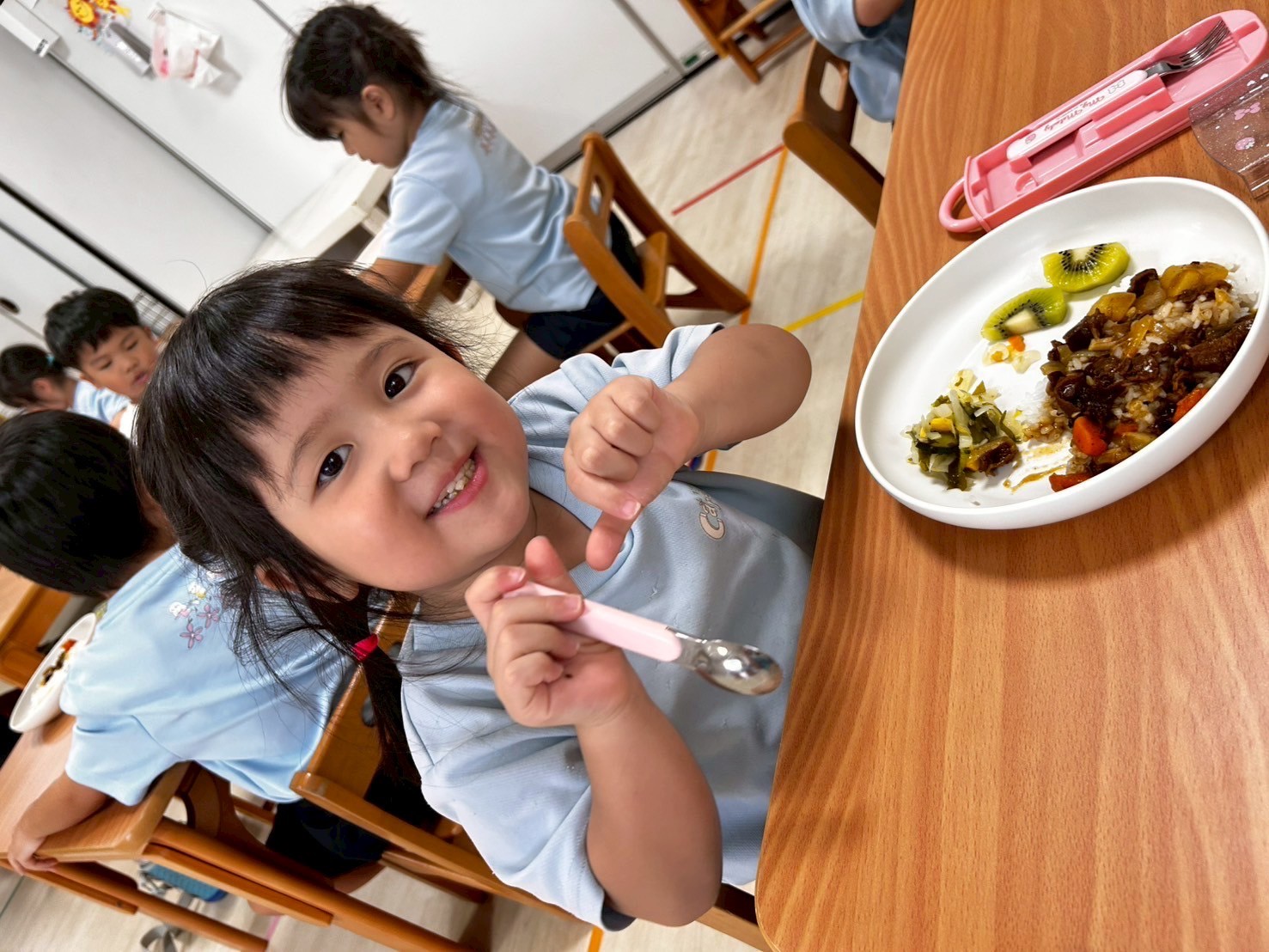 最後のお仕事の味見もしっかりとこなしカレー作りは終了🙌給食ではたくさんおかわりもして、笑顔が溢れていました♪(๑ᴖ◡ᴖ๑)♪【新宮園の今日の給食です】